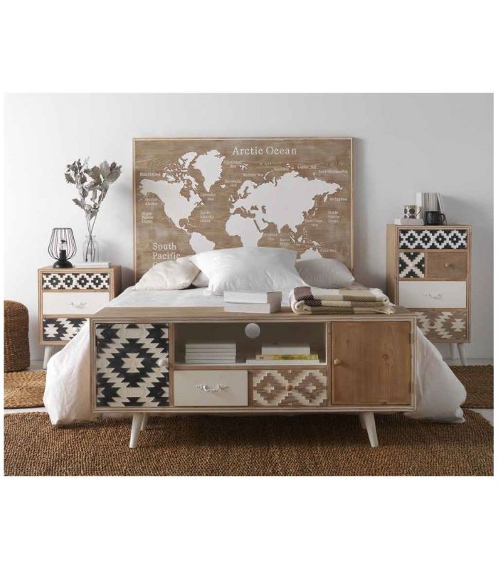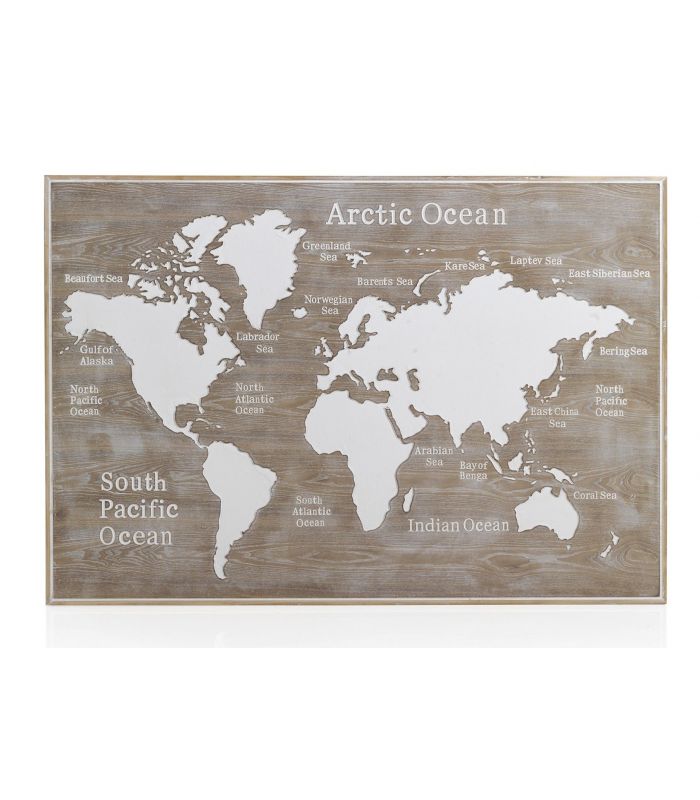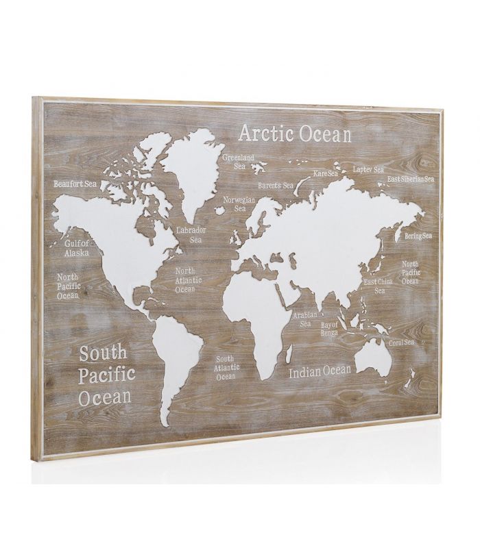 Cabezal para Cama de Matrimonio, Está fabricado en madera chapada de abeto, con aspecto envejecido. Es un original cabecero compuesto por el mapa del mundo tallado. Se trata de una pieza muy especial con la que harás de tu dormitorio un lugar único e irrepetible. Disponible para camas de 135 y 150 cm.