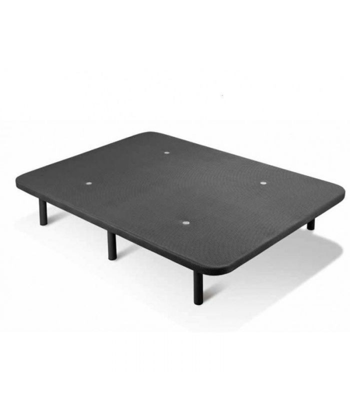 Base tapizada en tejido 3D, transpirable y acolchado, con estructura de tubo de acero reforzado, y tapa de aglomerado de 8 cm. Para facilitar la transpirabilidad, dispone de 4 aireadores. Con 5 travesaños que garantizan su gran fuerza y resistencia. Incluye soportes para 6 patas, a partir de medida 135 cm., preparado para 7 patas. Las patas son opcionales. Disponible en todas las medidas.