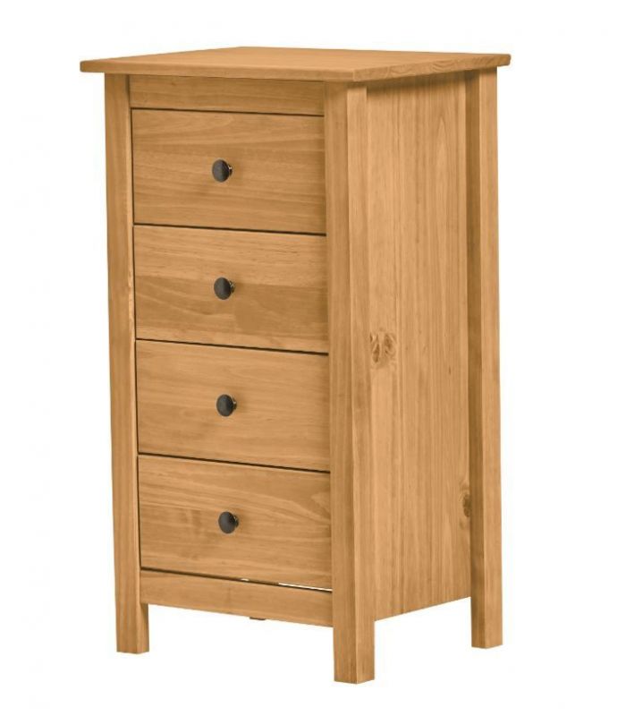 Sinfonier 4 Cajones Berna, fabricado en madera de pino maciza en cera. Su estilo clásico, provoca una sensación de tranquilidad esencial para cualquier estancia de dormitorio. Se compone de 4 Cajones perfectos para almacenaje de objetos de uso cotidiano. Combinable con los demás productos de la colección Berna.