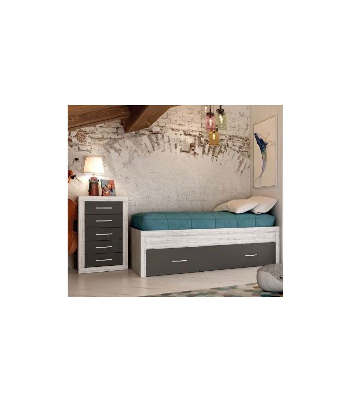 El conjunto de Dormitorio Juvenil Jordan Artic/Grafito, de primera calidad, creará un ambiente agradable y un espacio de lectura. Ofrecerá gran calidez a la estancia, gracias a su terminación de color en Artic.