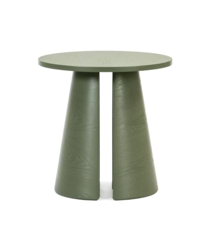 Mesa Rincón Auxiliar Cep,  Esta mesa destaca por su diseño simple y está disponible en varios colores. Tanto las patas como la tapa están fabricadas en DM con acabado en madera de fresno con acabado en color verde. La colección Cep es sencilla y minimalista, donde se busca sacar el máximo rendimiento al proceso de construcción de las piezas: el curvado de las maderas.