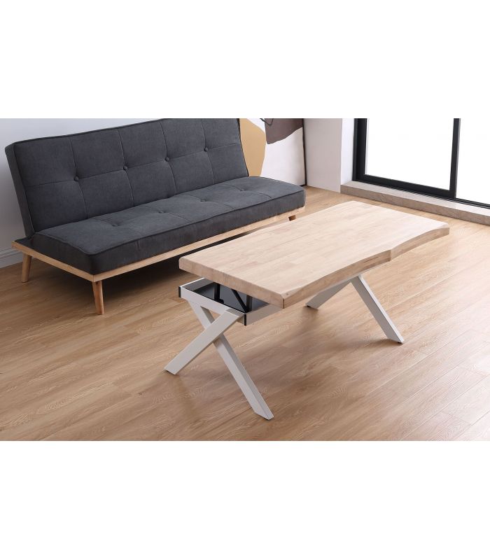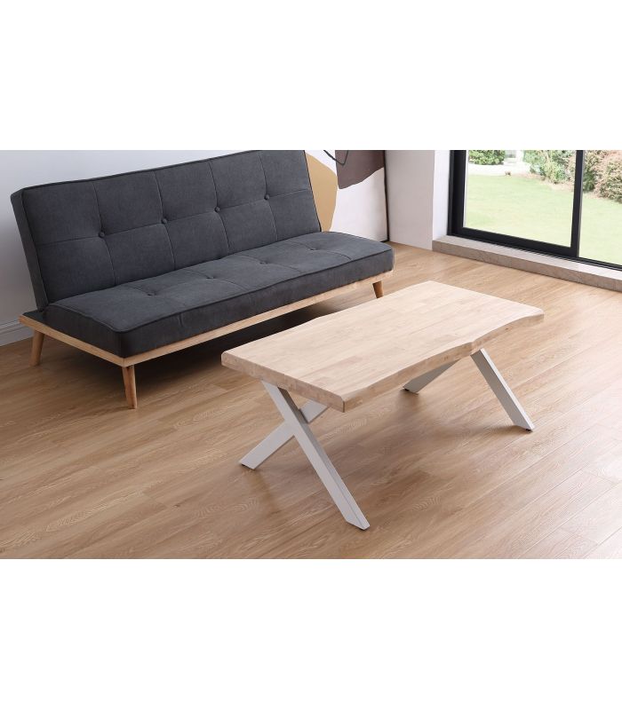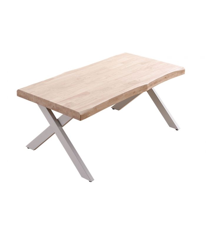 Mesa de Centro Xena en Roble natural, acabado Honey. Sus patas metálicas en color blanco en forma de X ofrecen a este diseño un resultado espectacular, que gracias a sus acabados tiene un diseño único, definido por los materiales con los que está fabricada. La tapa tiene forma, con un aspecto más rústico y acabados pulidos. Sus patas cuentan con conteras antirayado, para no dañar el pavimento.