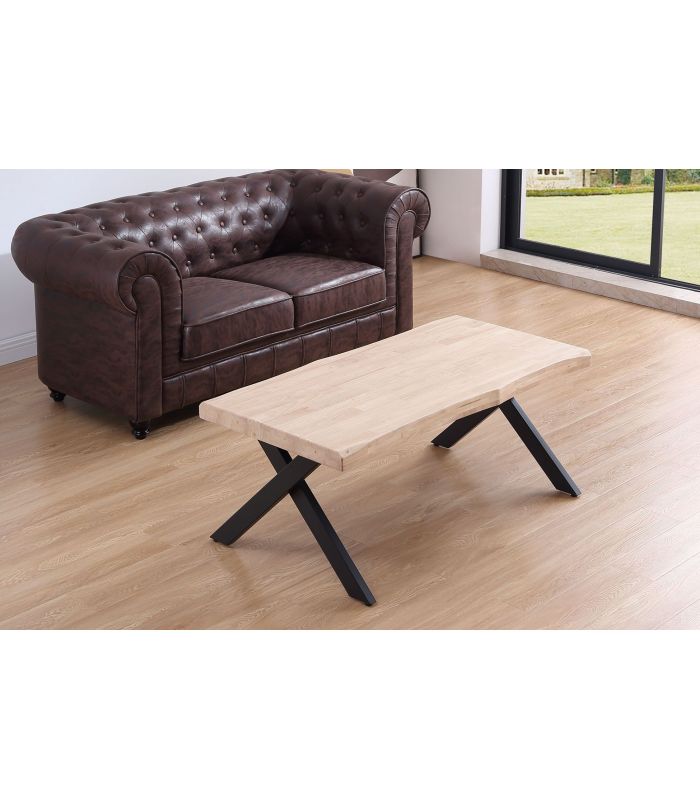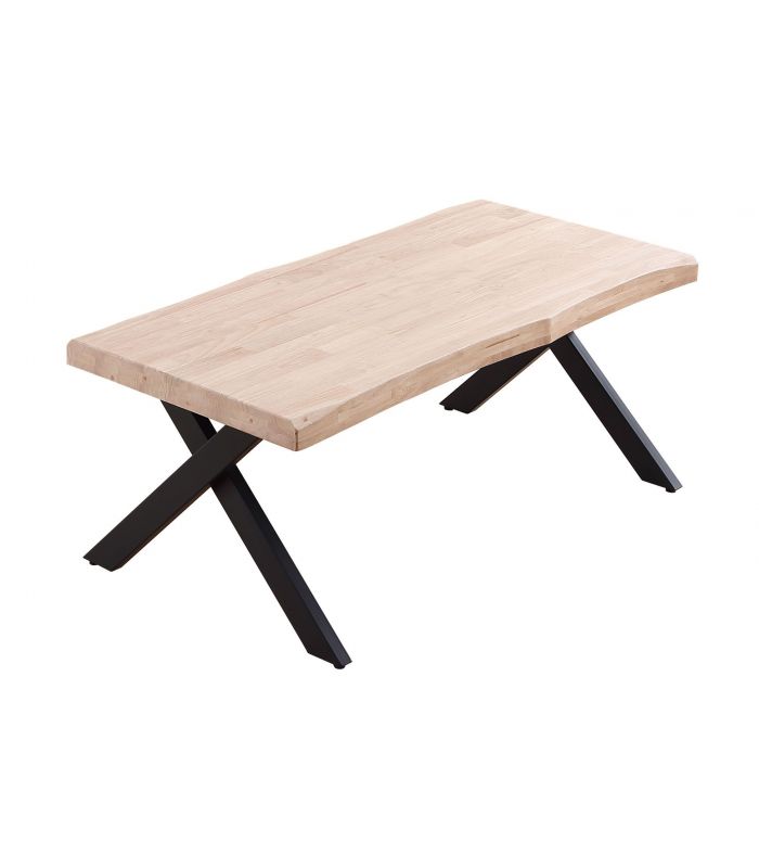 Mesa de Centro Xena en Roble natural, acabado Nordish. Sus patas metálicas en color negro en forma de X ofrecen a este diseño un resultado espectacular, que gracias a sus acabados tiene un diseño único, definido por los materiales con los que está fabricada. La tapa tiene forma, con un aspecto más rústico y acabados pulidos. Sus patas cuentan con conteras antirayado, para no dañar el pavimento.