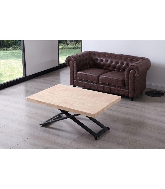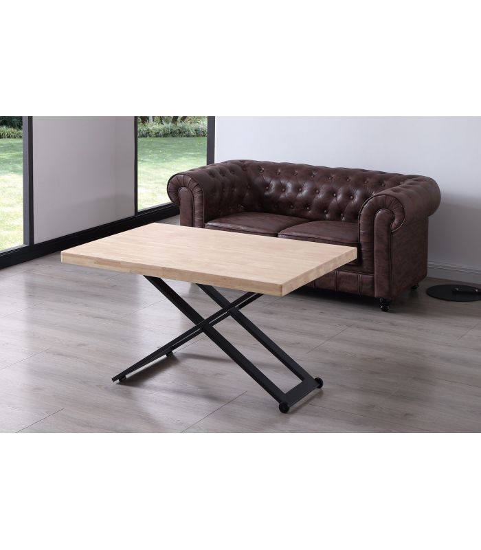 Mesa de Centro Zoe elevable, con tapa en Roble natural, acabado Nordish, ideal para poder elevar y utilizar como mesa de comedor. Sus patas metálicas en color negro en forma de X ofrecen a este diseño un resultado espectacular, que gracias a sus acabados tiene un diseño único, definido por los materiales con los que está fabricada. Tiene una terminación de líneas rectas, con acabados pulidos. Sus patas cuentan con conteras antirayado, para no dañar el pavimento.