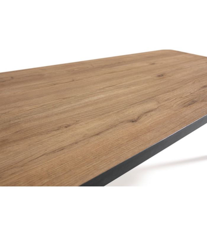 La Mesa Sindi, es una mesa de centro rectangular de amplias medidas, con la que disfrutar de nuestro tiempo libre de la mejor manera. El tablero cuenta con un tono de Roble Natural veteado, que quedará ideal en nuestra estancia. Como detalle, tiene los cantos en color bocamina, un tono de madera oscuro que va ideal con sus patas, de metal en color negro.