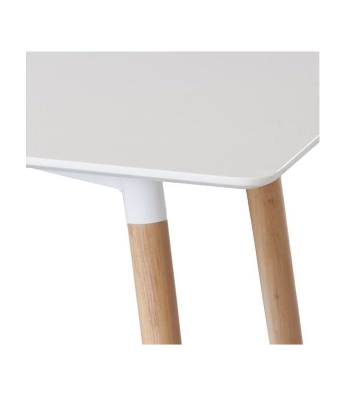 Mesa comedor Arendal, fabricada con materiales de primera calidad, y cuenta con un diseño moderno y elegante adaptables a ambientes de comedor de tonos suaves. Se compone de tapa lacada en blanco y patas de madera con acabado haya y topes regulables Combínala con las sillas adecuadas y consigue darle a tu comedor un toque elegante y sofisticado.