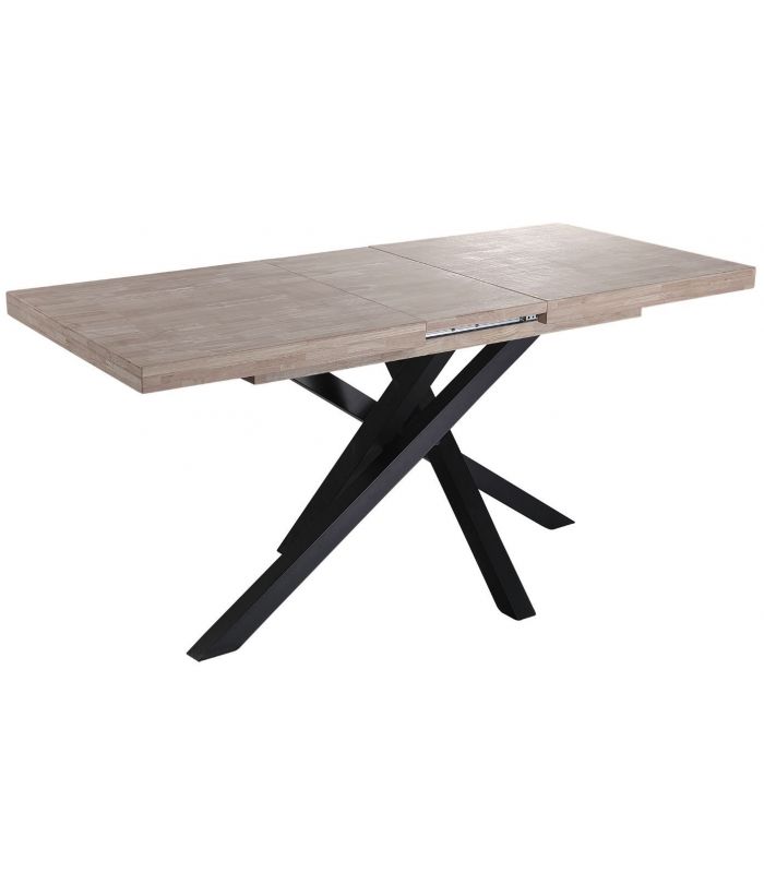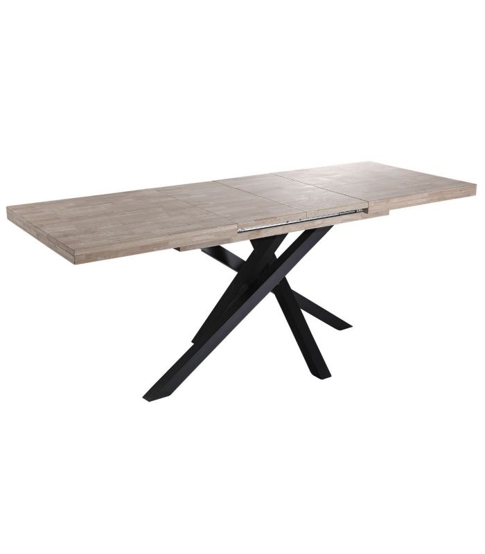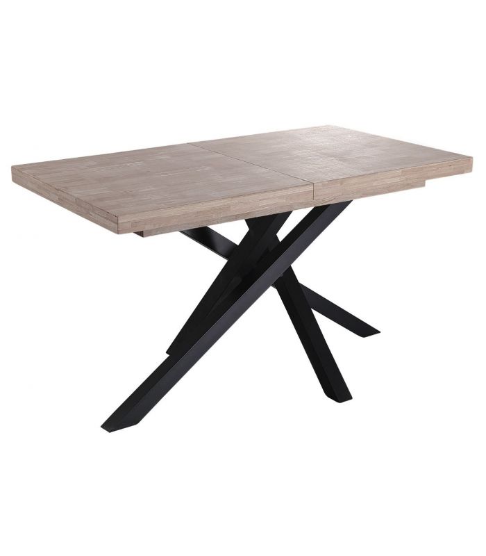 Mesa de Comedor Extensible Xena tiene la tapa fabricada en Roble, acabado Honey. Sus patas metálicas en color negro entrecruzadas, hacen de este mesa una estructura espectacular, unidas en el centro por un cuadrado de metal y madera de roble aportando mayor estabilidad. Cuenta con diseño único, definido por sus acabados. Este modelo tiene una terminación de líneas rectas, con acabados pulidos. Sus patas tienen conteras antirayado, para no dañar el pavimento.