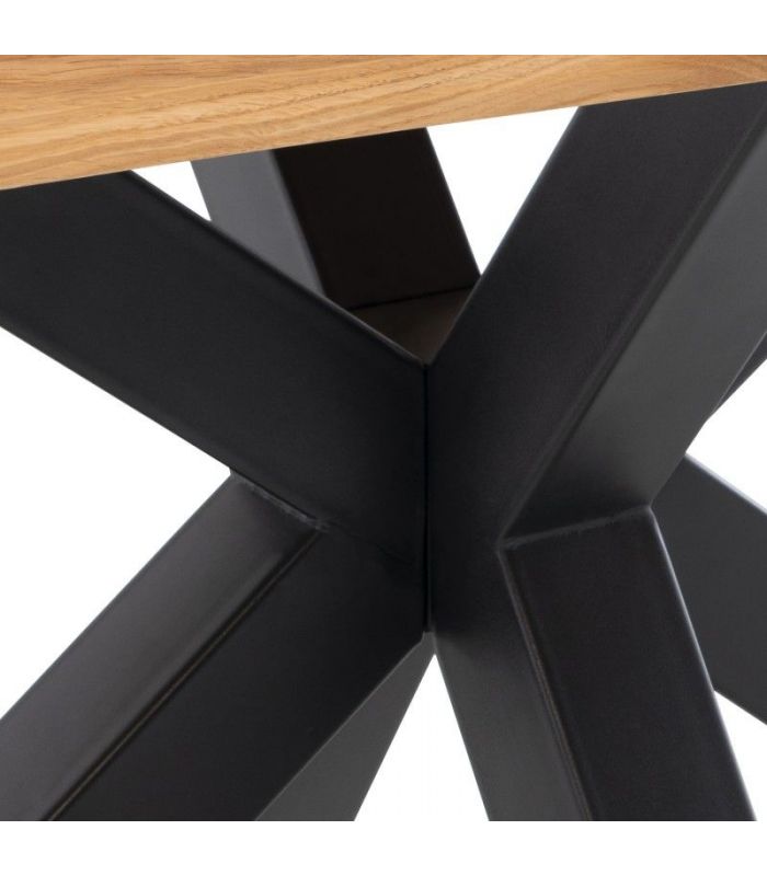 Mesa Comedor Grace, compuesta por tapa de madera maciza de roble de 50 mm de grosor con acabado natural y patas de metal  entrecruzadas con acabado en color negro. Destaca por el diseño de las patas que le aporta un toque de originalidad y se adapta a la perfección a cualquier ambiente. Disponible en varios colores.