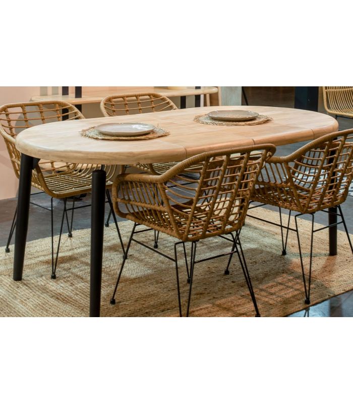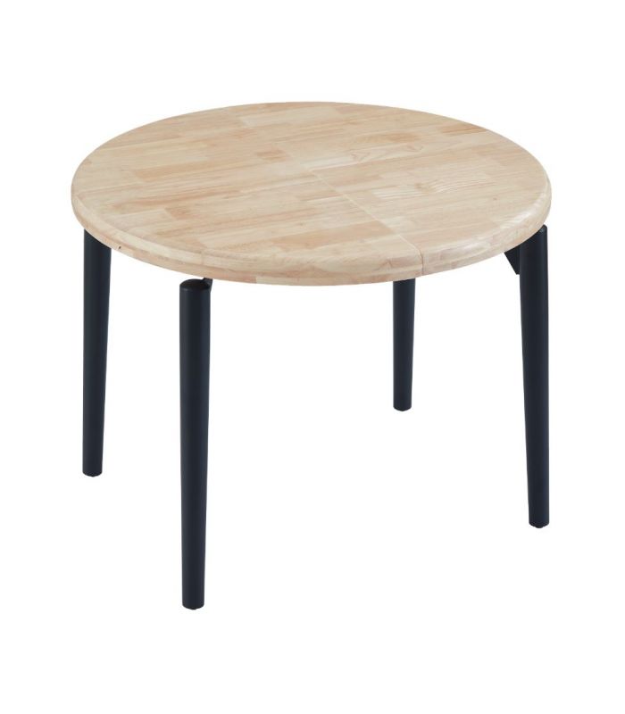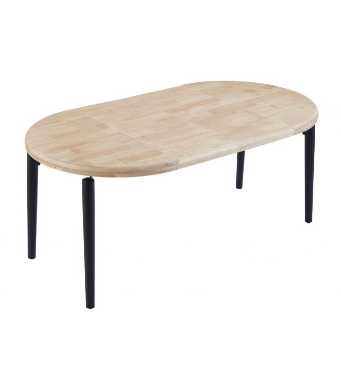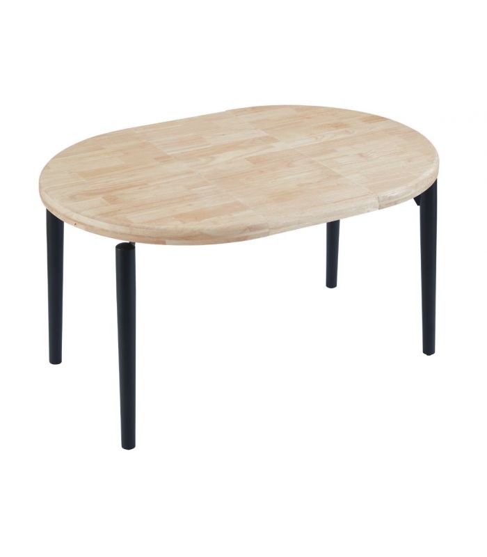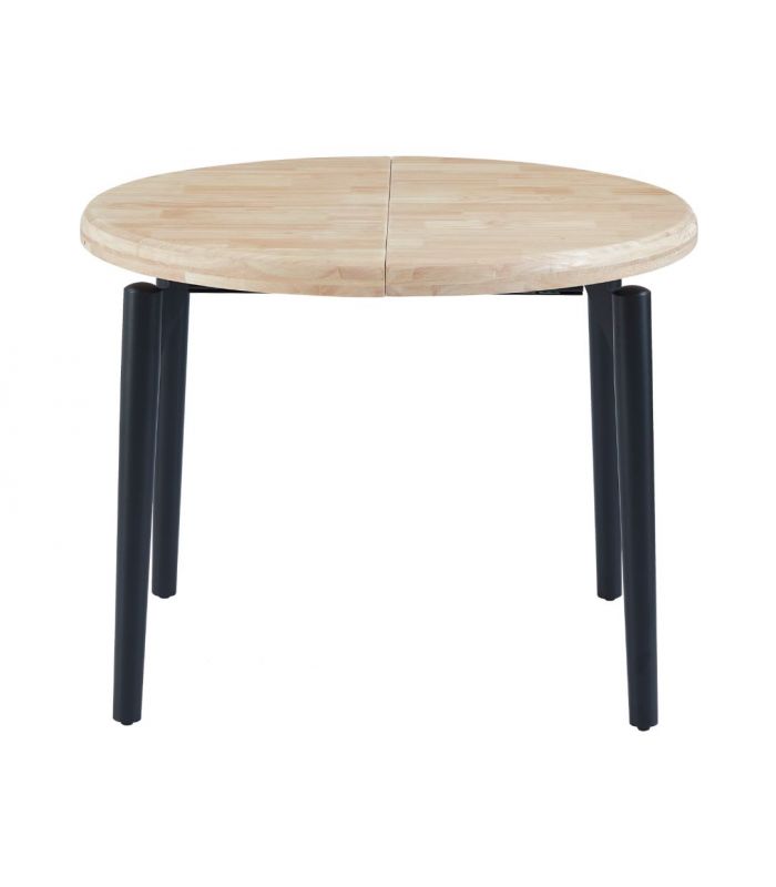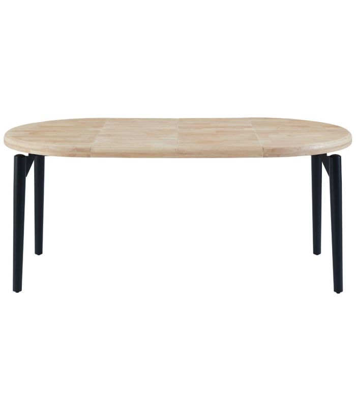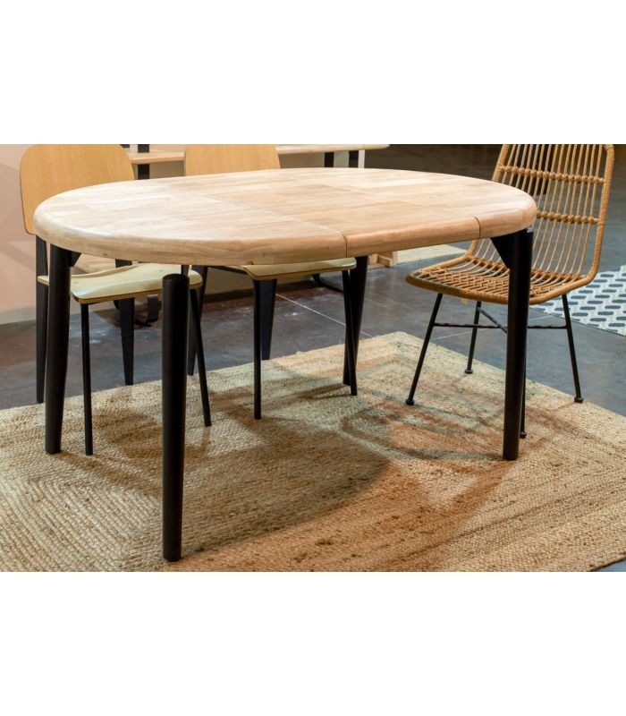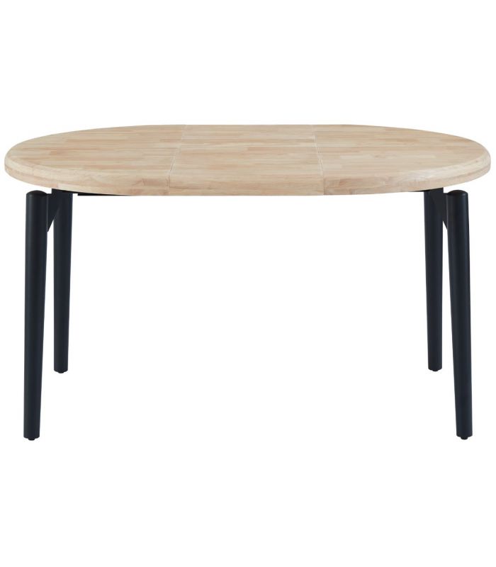 Mesa de Comedor Extensible Moon con tapa fabricada en Roble, acabado Nordish de alta calidad. Cuenta con patas metálicas unidas en el centro en color negro, aportando firmeza y resistencia. Su diseño es único, definido por sus acabados.