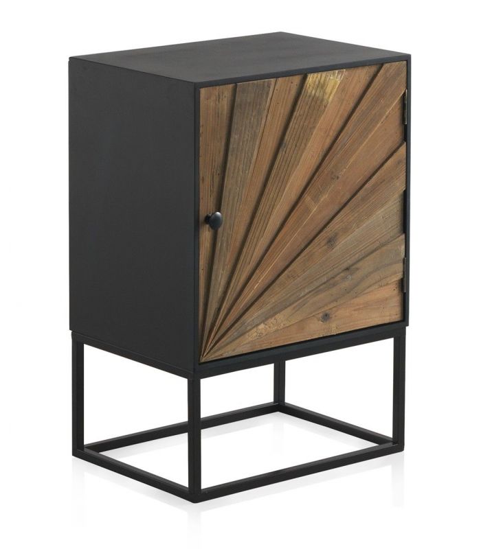 Mesita 1 Puerta 48x70 Se compone de 1 puerta y está fabricada con tablero de mdf lacado negro, lamas recicladas de madera de abeto, y base de metal color negro.Destaca porque en ella se cuida cada detalle, consiguiendo un diseño elegante y sofisticado. Ideal para ambientes de estilo industrial.