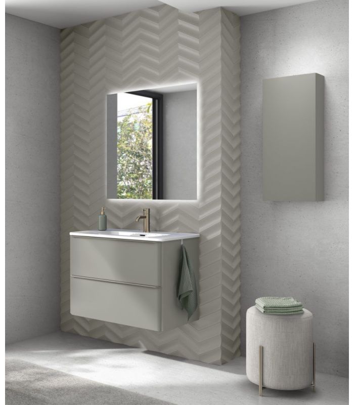 Tendrás la posibilidad de incluir espejo y aplique de LED, o espejo Lys (con luz natural Led directa, integrada en el espejo). También puede adquirir columna Dai, disponible en nuestra web.
