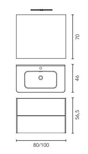 Medidas lavabo: 81/101 cm de ancho x 46 cm de fondo x 2 cm de grosor.