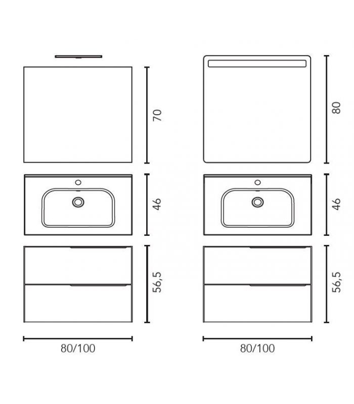 Medidas lavabo: 81/101 cm de ancho x 46 cm de fondo x 2 cm de grosor.