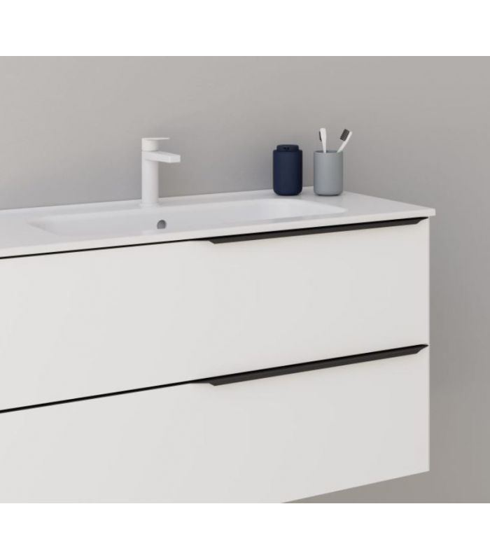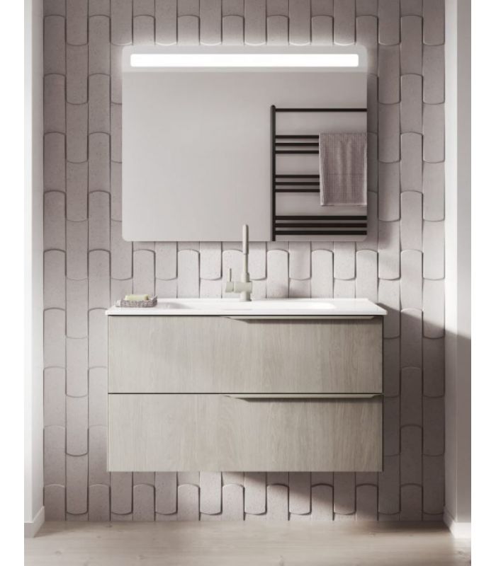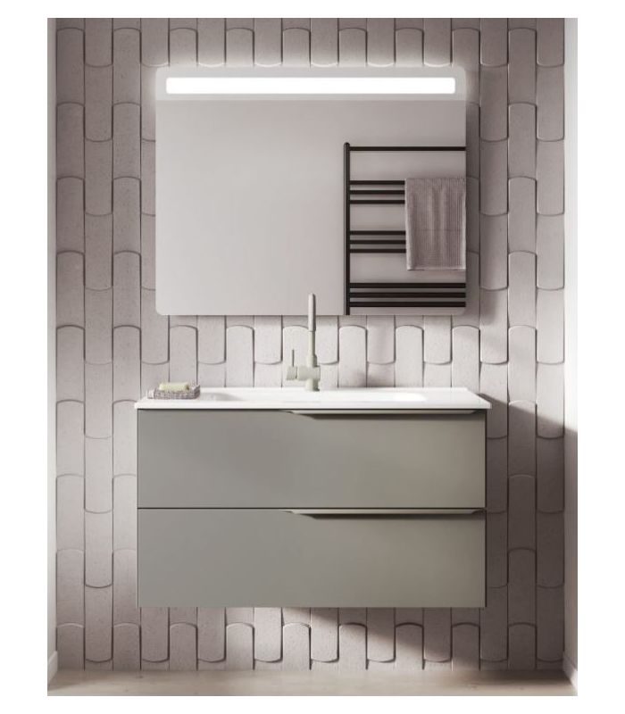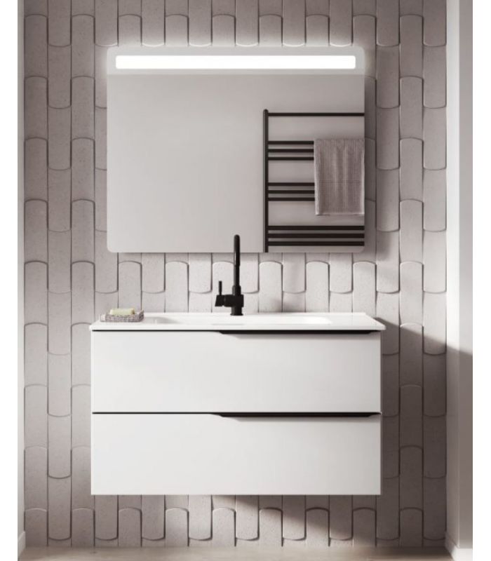 Tendrás la posibilidad de incluir patas, para darle un toque exclusivo. Además, podrás adquirir espejo y aplique de LED, o espejo Lys de luz LED integrada. También puede adquirir columna Mio disponible en nuestra web.