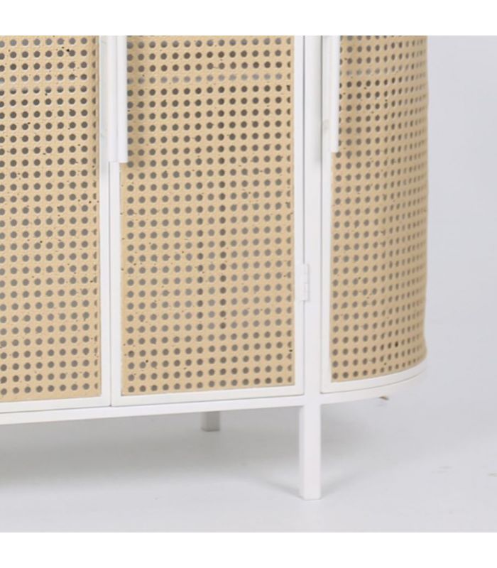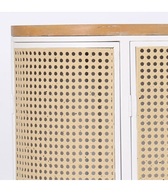 El mueble Auxiliar Say está fabricado con varios materiales. Su estructura es metálica color blanco, sus frentes están enrejillados en color natural, y la tapa es de MDF en acabado madera rústica. El diseño exclusivo de Say, hace que sea un mueble único, con unos acabados impecables. Podrás tener un mueble de inspiración vintage por un precio excepcional.