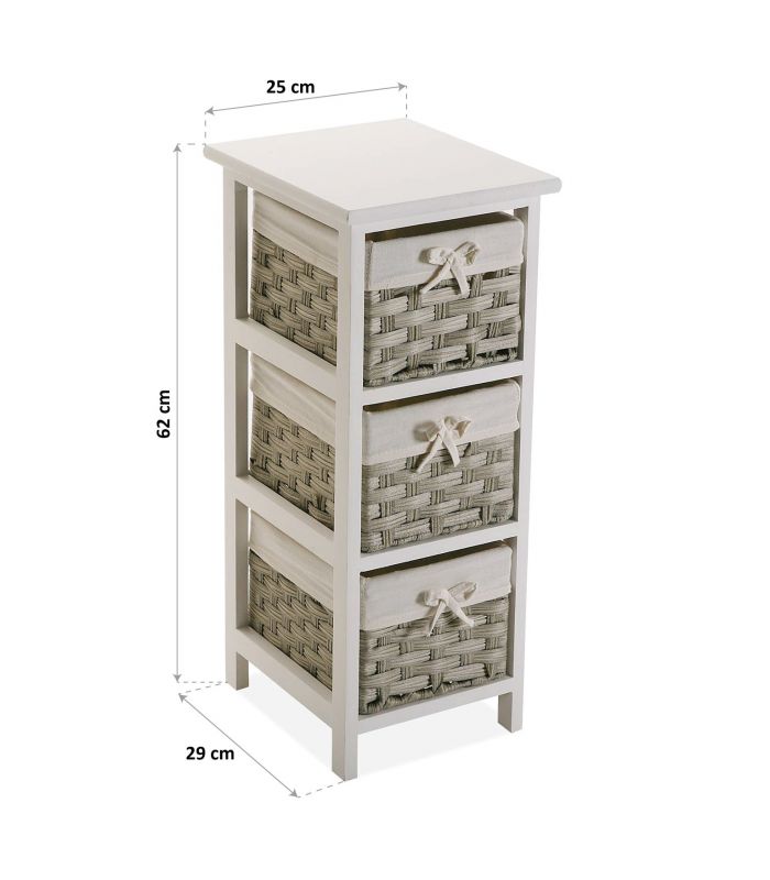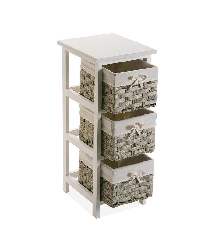 Cajonera Madera con 3 Cestas Mimbre Ampliar