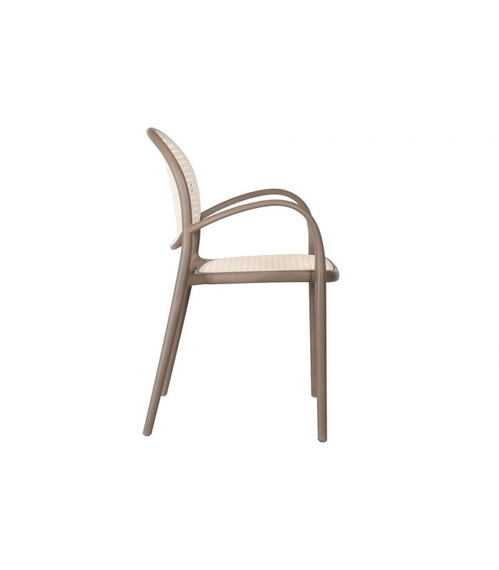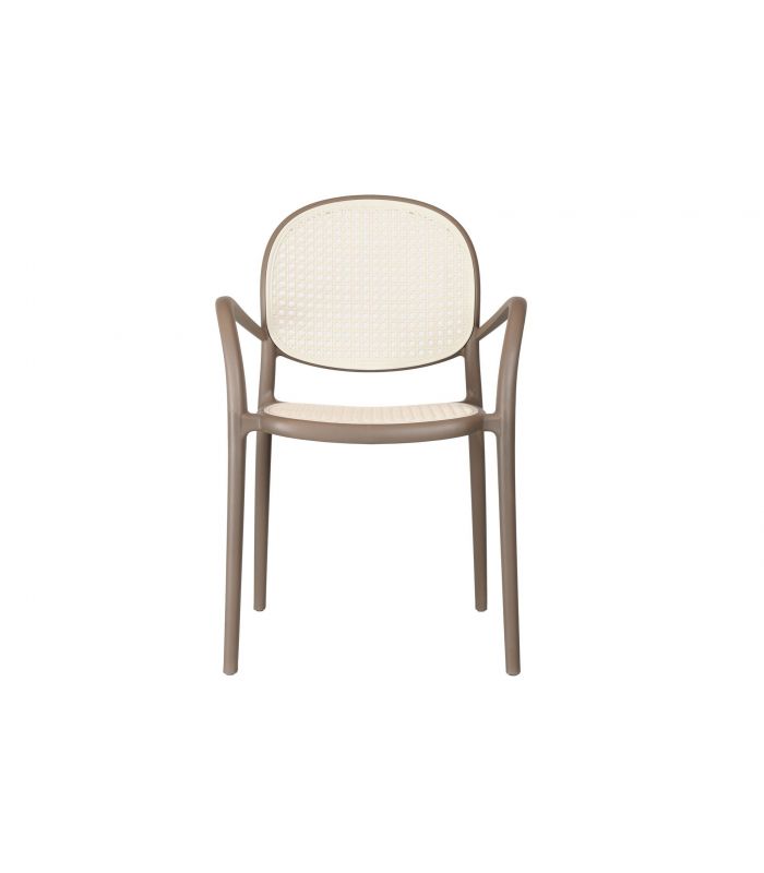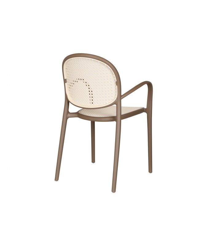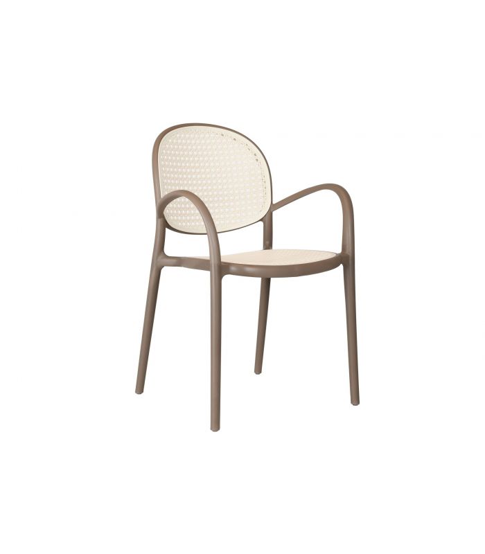 Masia es una silla moderna con brazos inspirada en las sillas de rattán, pensada como silla multiusos, ya que se puede combinar fácilmente en multitud de estancias. Sus terminaciones son curvas, suaves y agradables al tacto, el respaldo es redondeado aportando comodidad. Está fabricada en polipropileno de alta resistencia. Es una silla que versátil, ya que es fácil de combinar gracias a sus acabados. Podrás darle un toque especial a la estancia.