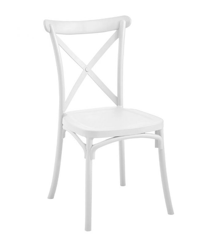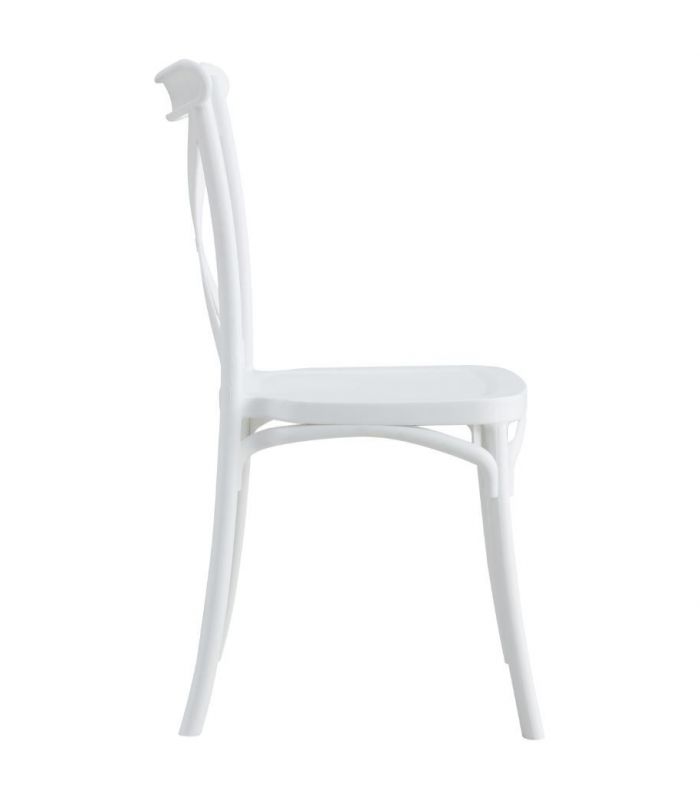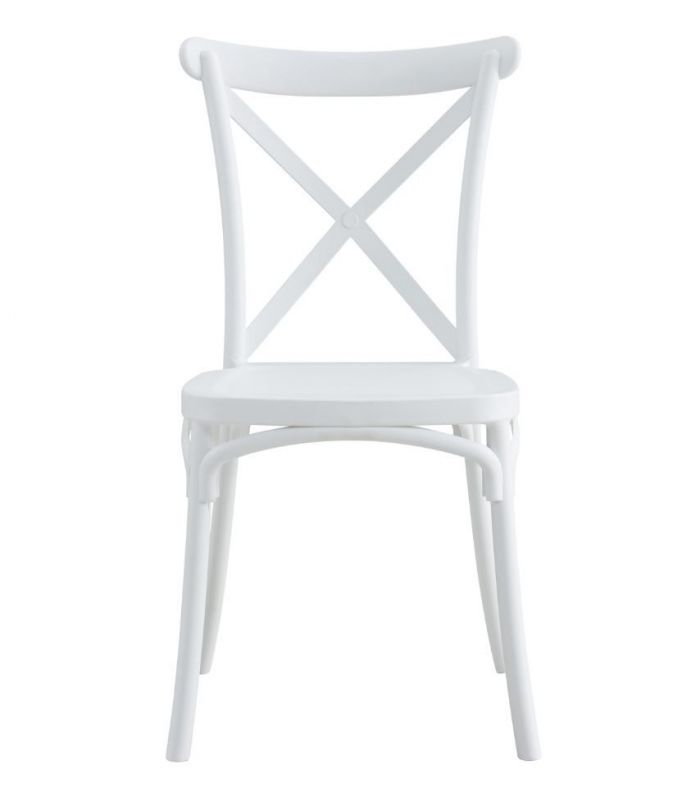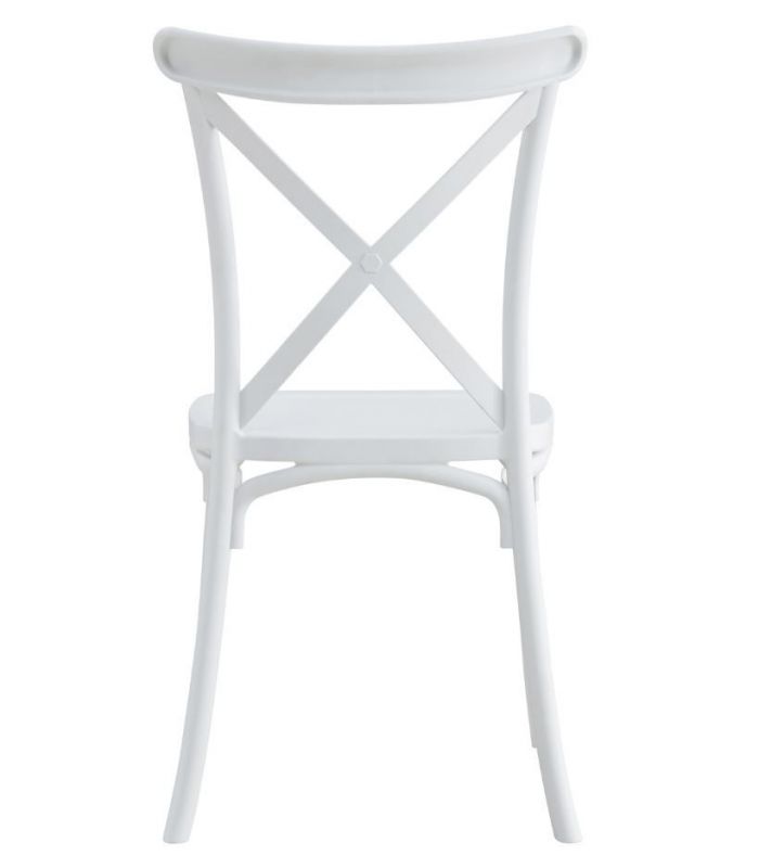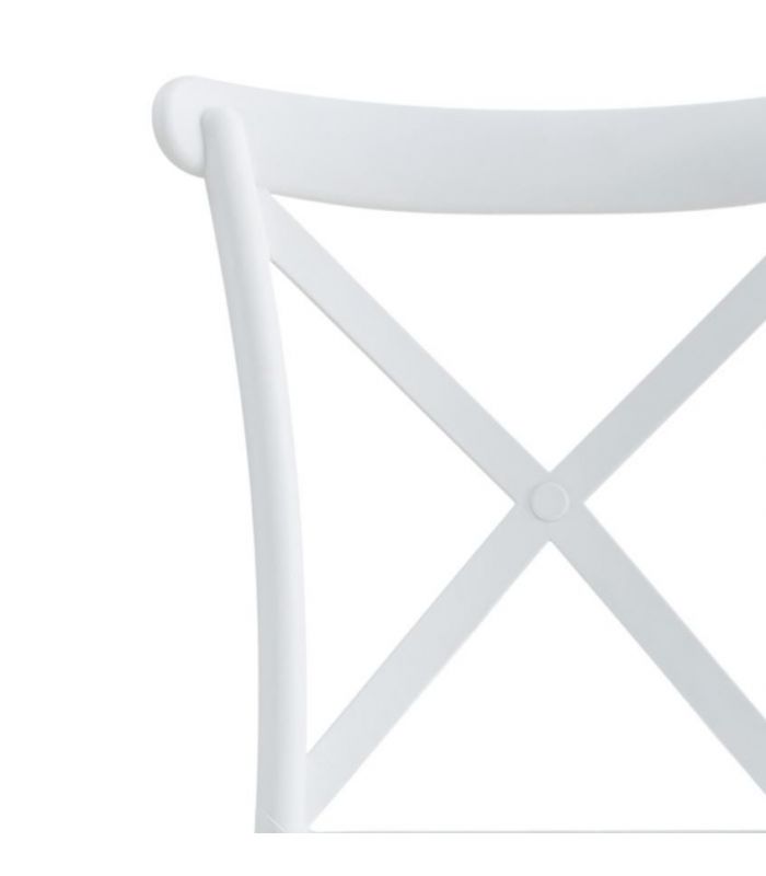La silla Crossback en polipropileno color blanco. Gracias a su diseño, es un mueble de alta decoración que destaca por sus acabados, de estilo clásico y actual, que hace que sea original. Se venden en pack de 4 unidades.