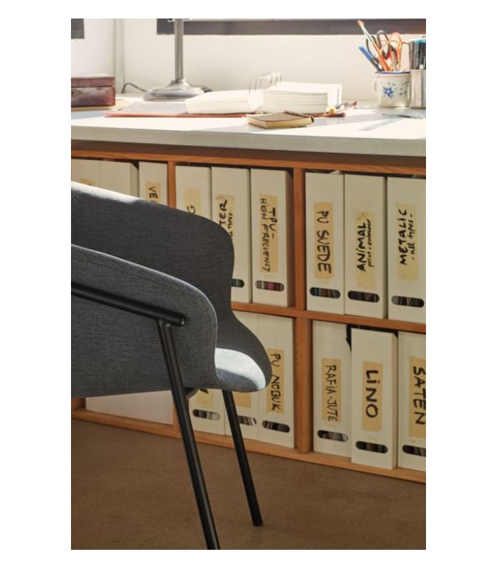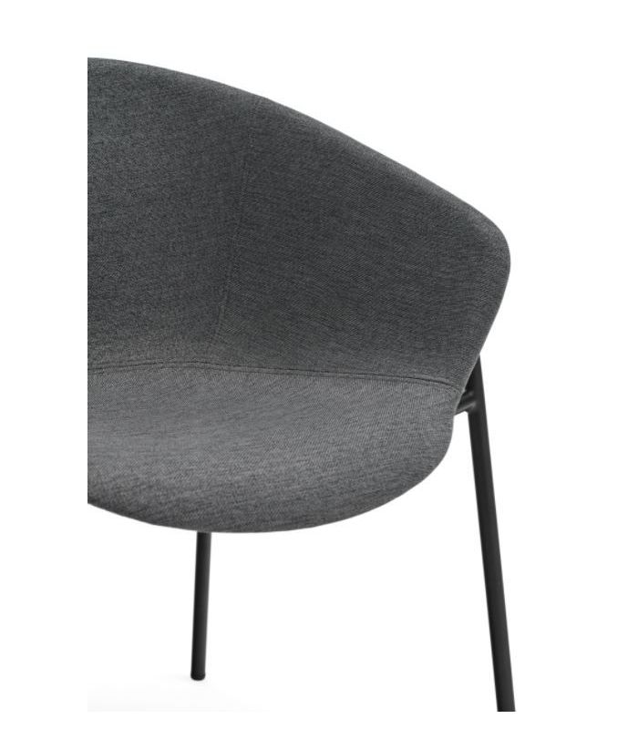 La colección Hug se caracteriza por cómo la estructura metálica abraza el cuerpo tapizado. Su asiento es amplio y confortable haciéndola perfecta para alargar las sobremesas o las cenas con amigos.