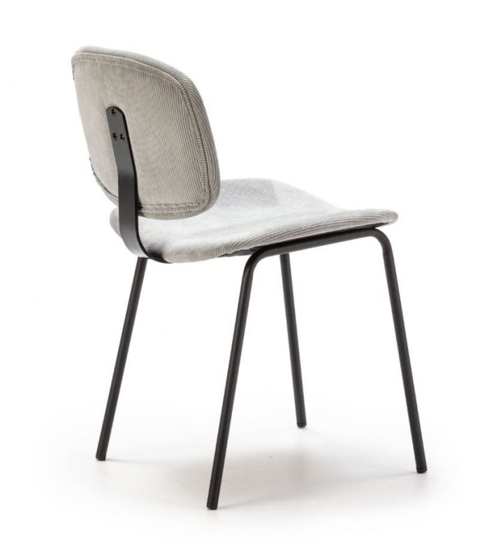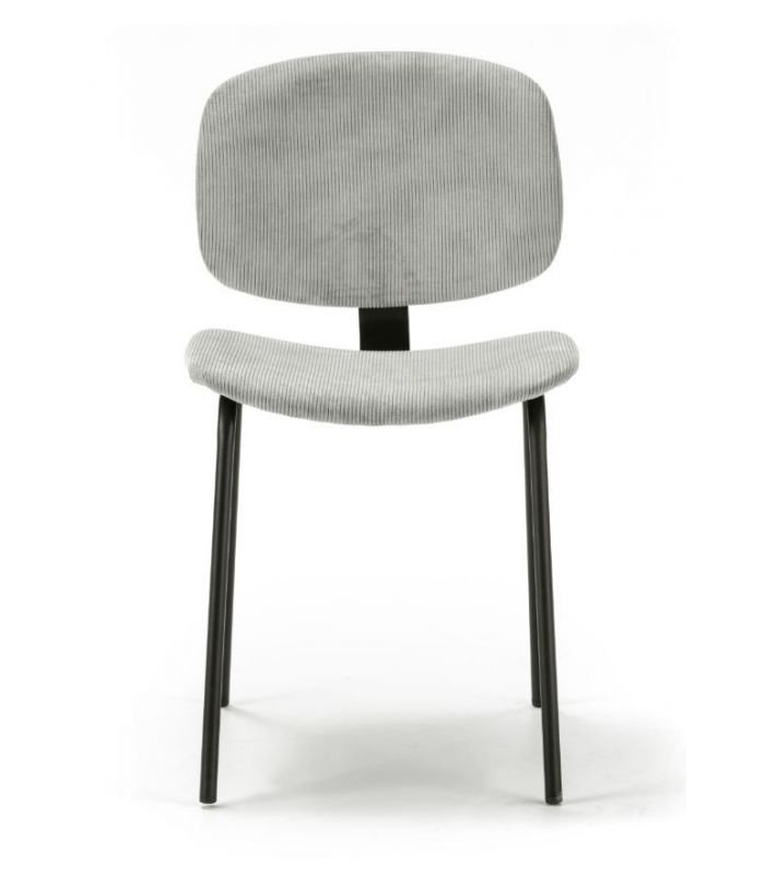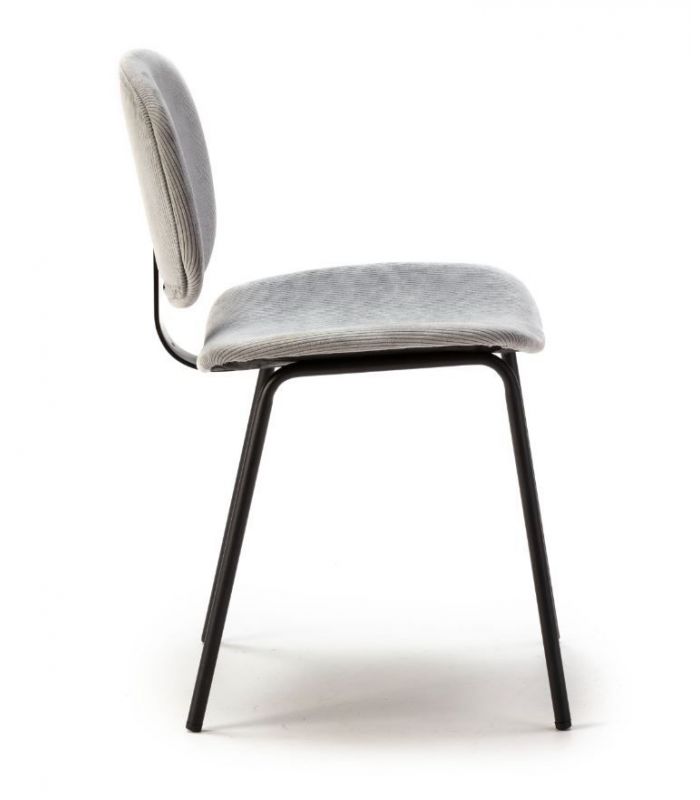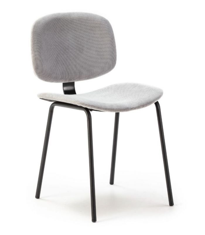 La silla Arus tiene diseño sencillo y diferente, de estilo industrial. Tapizada en tejido de alta calidad en color gris, que hará de la estancia un lugar elegante, con patas metálicas que aportan mayor estabilidad en color negro. El asiento y el respaldo son curvos, para hacer la sentada más agradable. Es combinable con gran variedad de mesas de nuestro catálogo.
