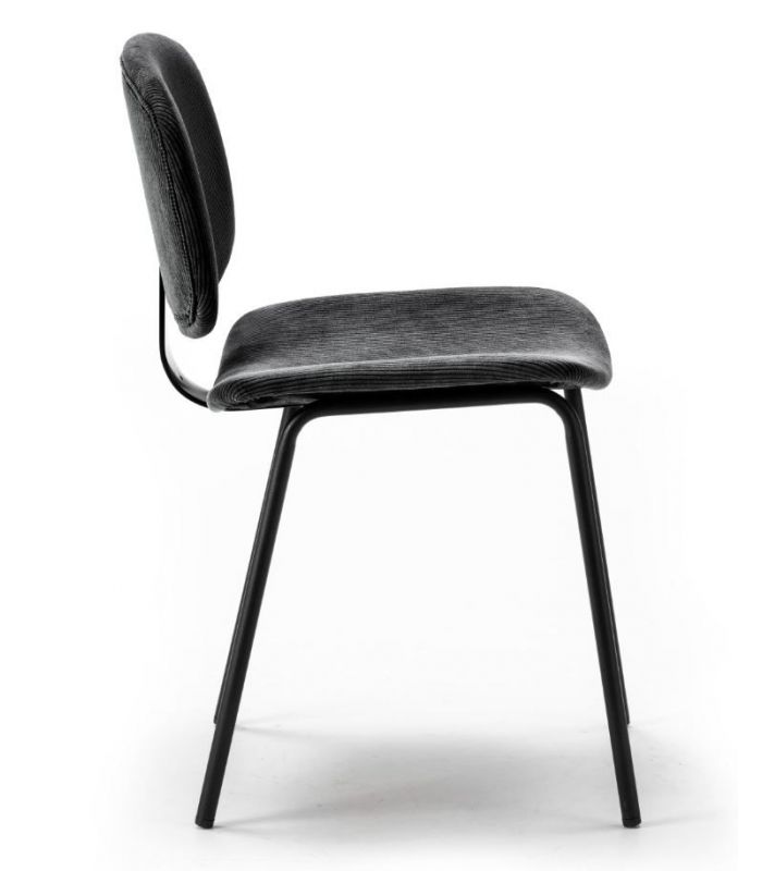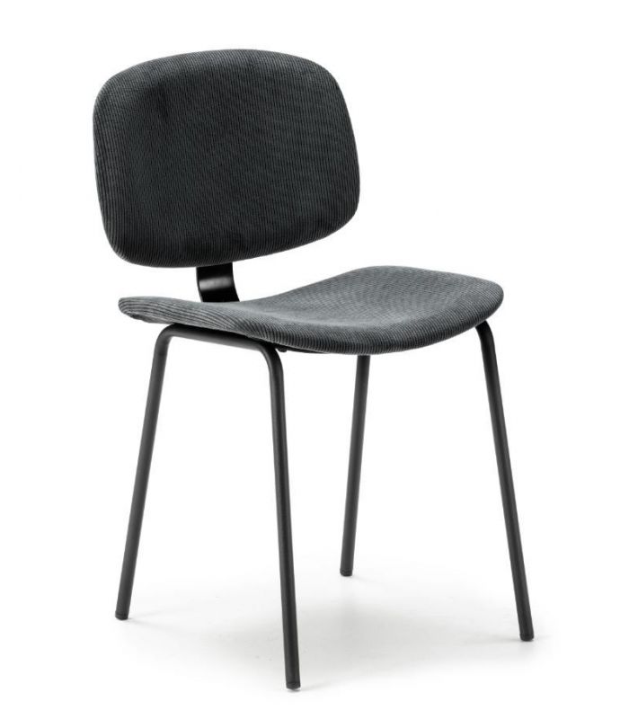 La silla Arus tiene diseño sencillo y diferente, de estilo industrial. Tapizada en tejido de alta calidad en color negro, que hará de la estancia un lugar elegante, con patas metálicas que aportan mayor estabilidad en color negro. El asiento y el respaldo son curvos, para hacer la sentada más agradable. Es combinable con gran variedad de mesas de nuestro catálogo.