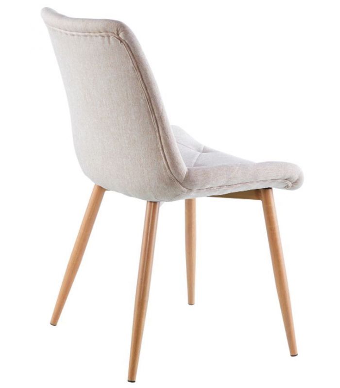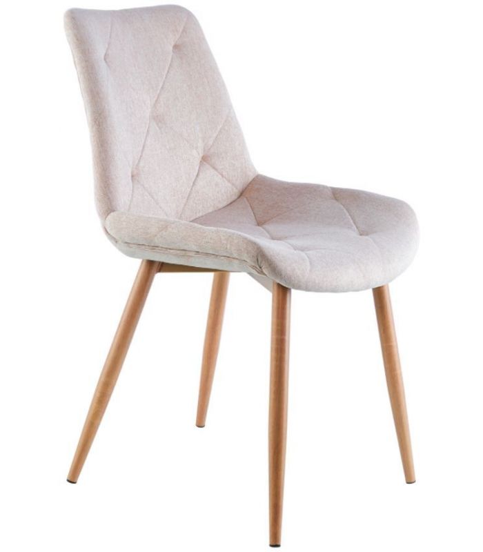 La silla de comedor Marlene, es una fantástica silla fabricada con materiales de primera calidad lo que hace que sea resistente y estable. Esta compuesta por asiento y respaldo acolchados que aportan gran comodidad, tapizada en tejido con acabado en color beige y patas metálicas efecto roble con acabado natural.