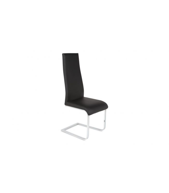 Silla de Comedor Salamanca, compuesta por estructura tapizada en ecopiel en color negro y patas metálicas patín acabadas en color cromado. Se trata de una silla que se puede utilizar en gran variedad de estancias.  Pack de 4 unidades.