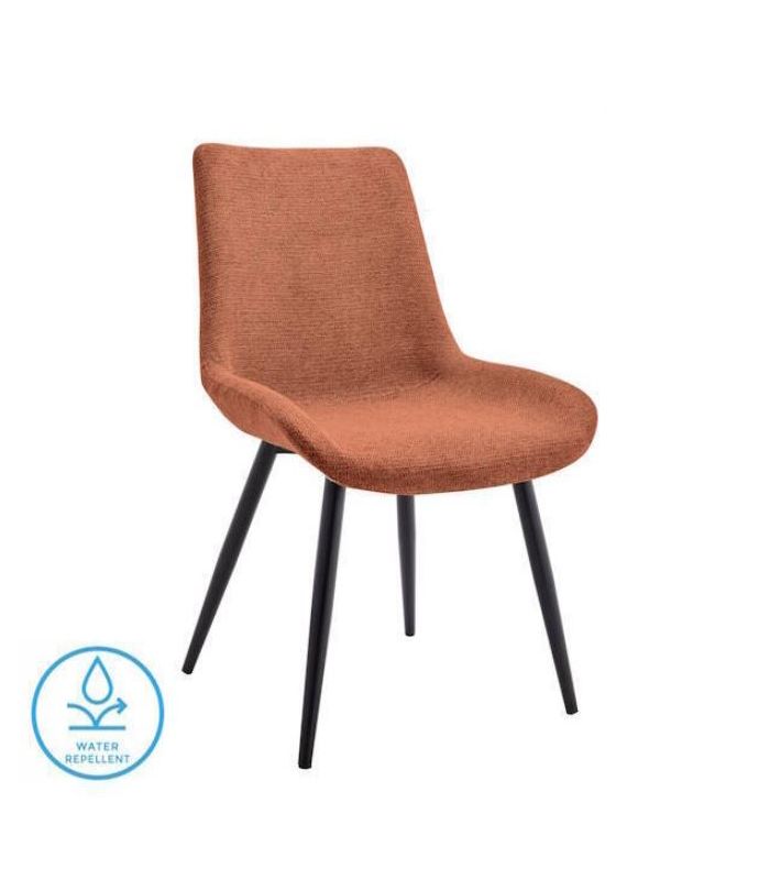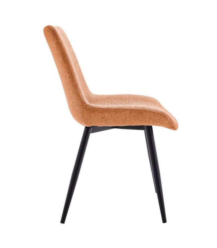 Silla de comedor Dere, fabricada con materiales de alta calidad. Tapizada en tejido teja, con tratamiento repelente al agua. El asiento y respaldo está fabricado en una sola pieza. Sus patas son metálicas color negroDisponible en otros acabados en nuestra web. Ideal para comedores y salones de estilo moderno. Se vende en pack de 4 unidades.