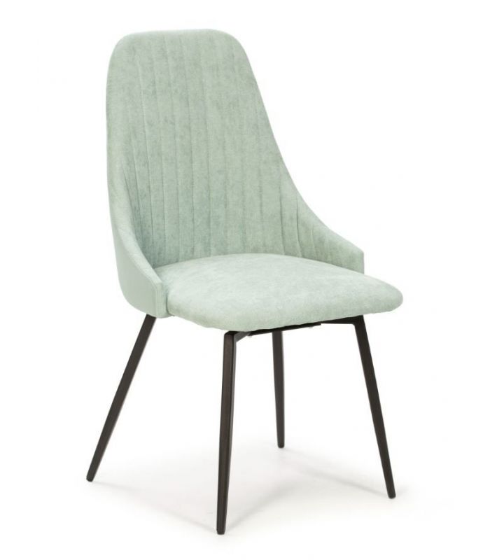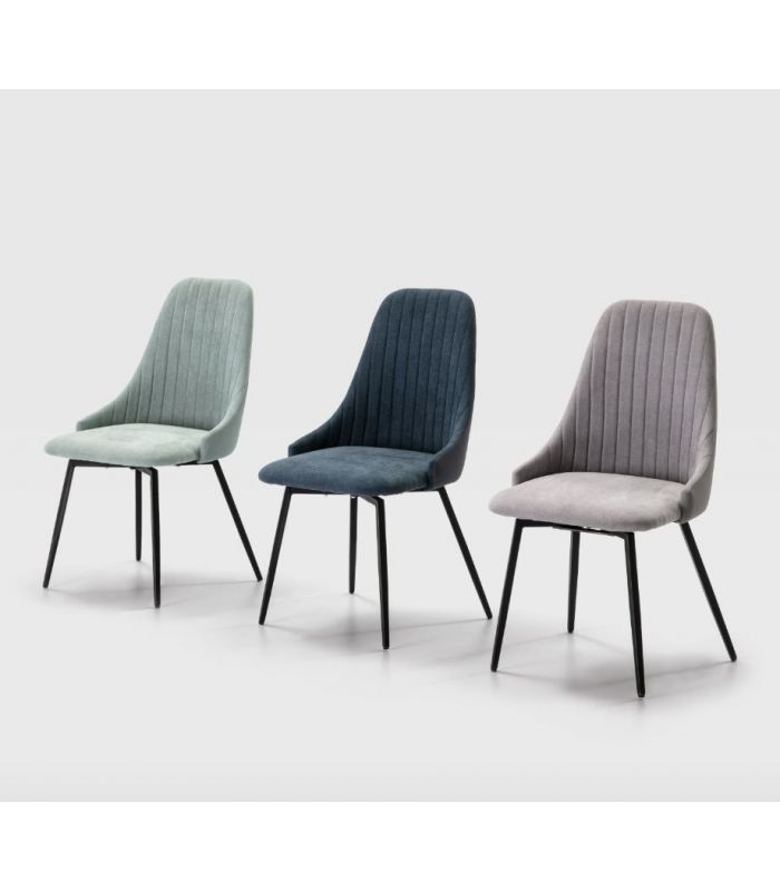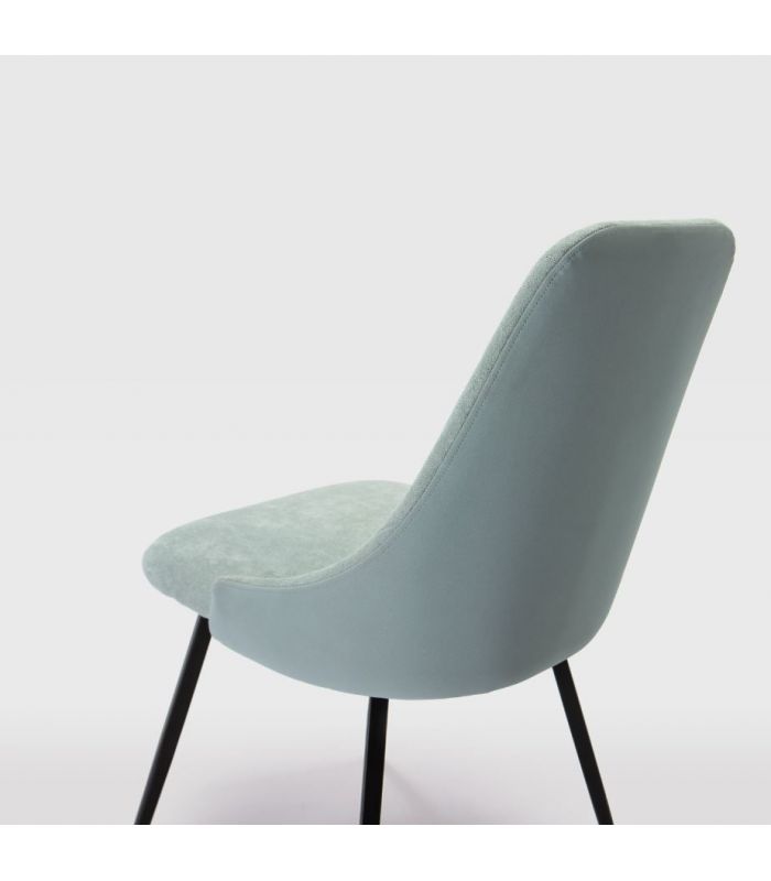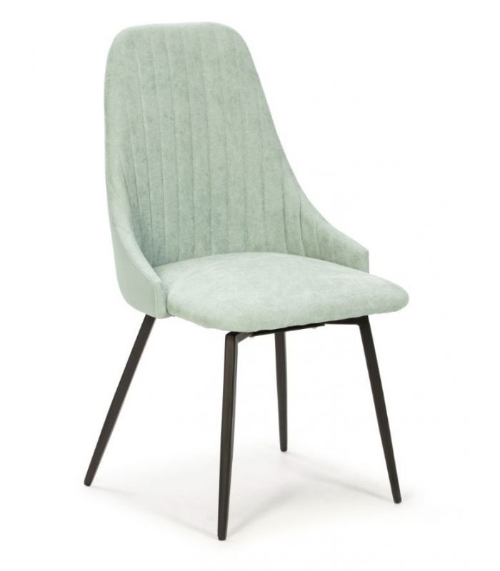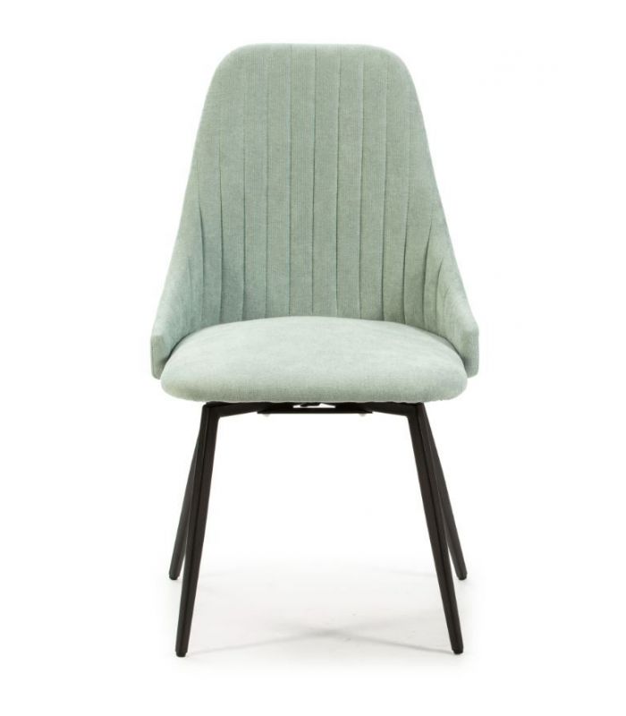 La silla Elma es giratoria, y está tapizada en tejido de alta calidad en color verde. Su color hará de su estancia un lugar muy elegante, con patas metálicas que aportan mayor estabilidad en color negro. El respaldo tiene líneas en vertical, haciéndola más esbelta. Es combinable con gran variedad de mesas de nuestro catálogo.