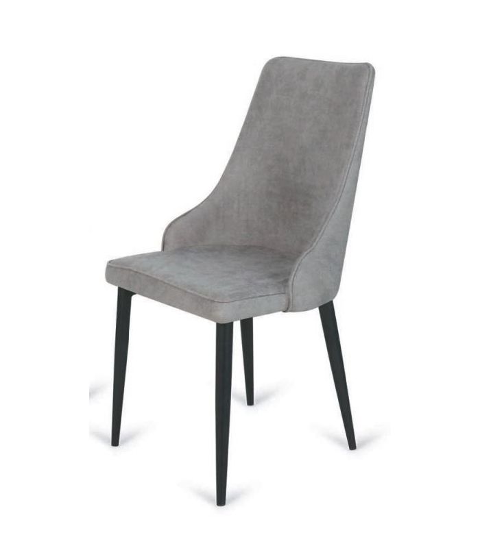 Silla Imperial, compuesta por asiento y respaldo tapizado en tela tipo lido en color gris con ribete en todo el filo de la silla y patas metálicas con acabado en color negro. Se trata de una silla que se puede utilizar en gran variedad de estancias.  Pack de 4 unidades.
