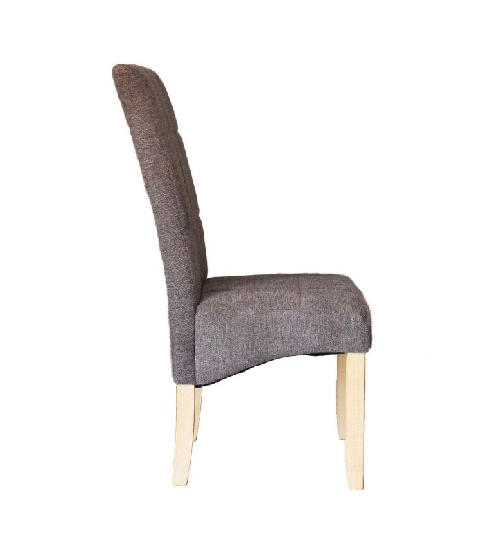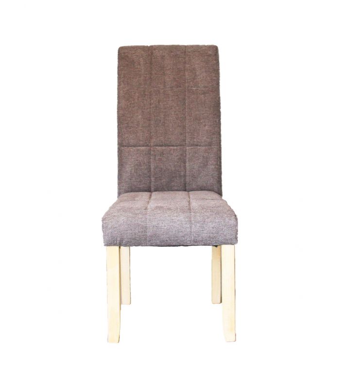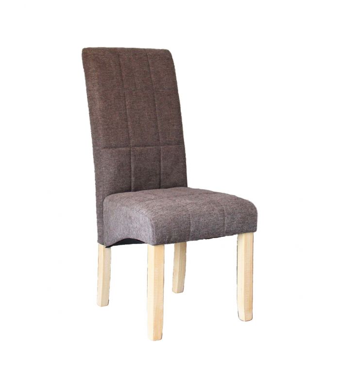 Kali es una silla con un diseño sencillo de líneas rectas, tapizada en tejido color marrón, con respaldo tipo capitoné. Está fabricada en contrachapado de madera con relleno de espuma. Sus patas son de madera color negro, y en la parte inferior tiene conteras antirallado para no dañar el pavimento. Ideal para utilizar en salón, comedor, hostelería... De uso diario gracias a los materiales con los que está fabricada. Sus patas son fuertes y robustas.