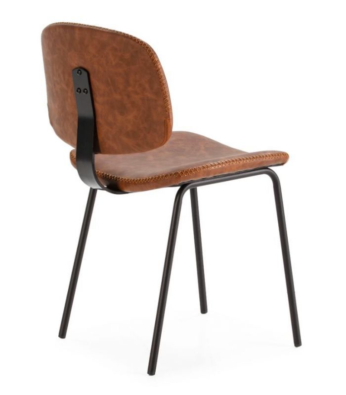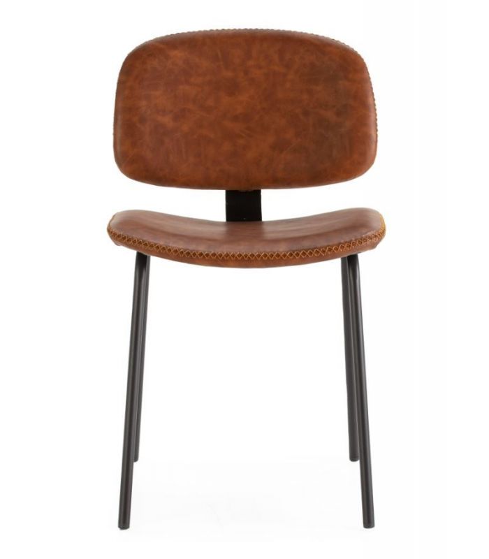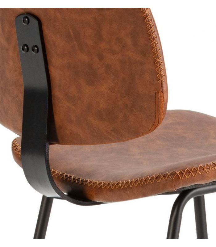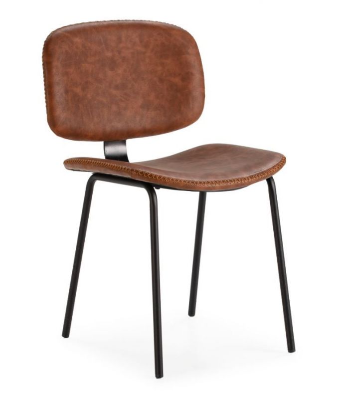 La silla Mali de estilo industrial, está tapizada en piel sintética color marrón, que hará de la estancia un lugar elegante con patas metálicas que aportan mayor estabilidad en color negro. El asiento y el respaldo son curvos, para hacer la sentada más agradable. Es combinable con gran variedad de mesas de nuestro catálogo.
