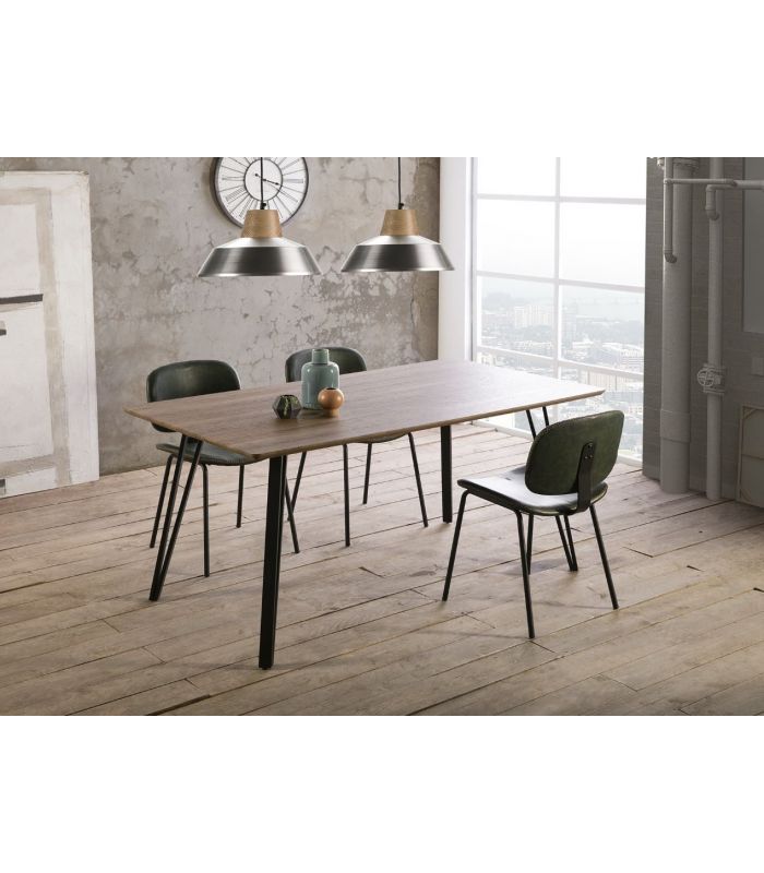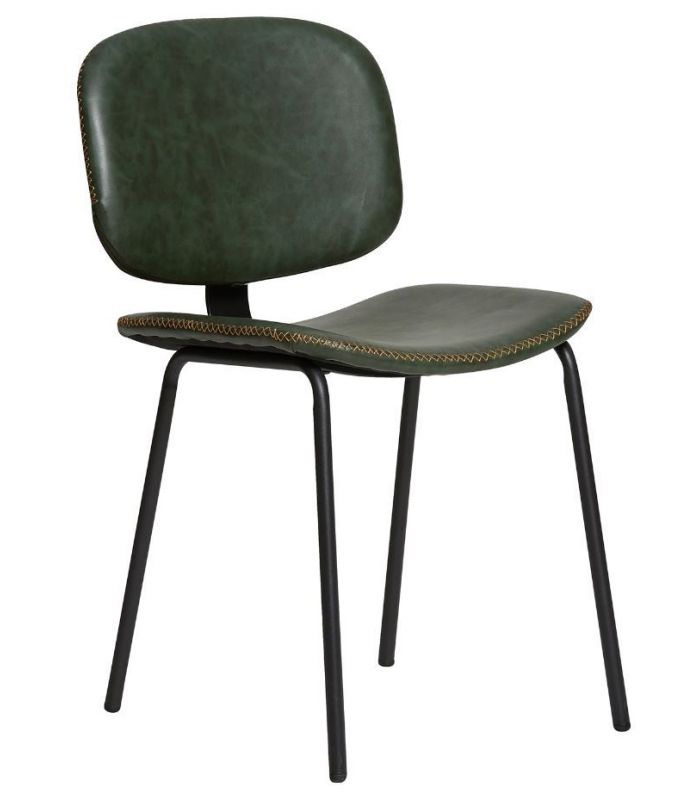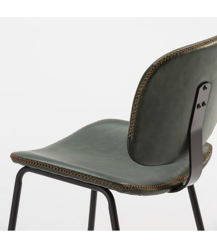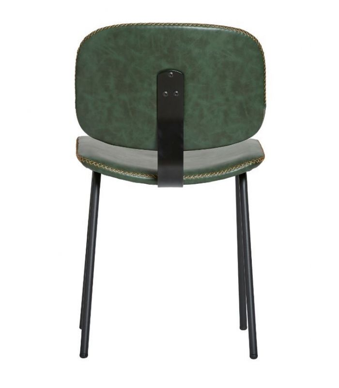 La silla Mali de estilo industrial, está tapizada en piel sintética color verde, que hará de la estancia un lugar elegante con patas metálicas que aportan mayor estabilidad en color negro. El asiento y el respaldo son curvos, para hacer la sentada más agradable. Es combinable con gran variedad de mesas de nuestro catálogo.