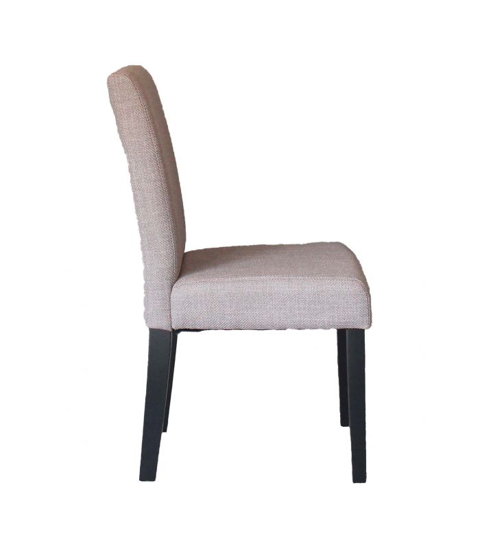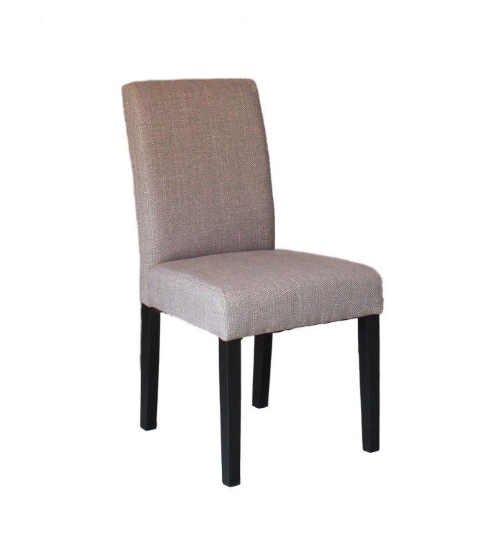Navy es una silla con un diseño sencillo de líneas rectas, tapizada en tejido color piedra. Está fabricada en contrachapado de madera con relleno de espuma. Sus patas son de madera color negro, y en la parte inferior tiene conteras antirallado para no dañar el pavimento. Ideal para utilizar en salón, comedor, hostelería... De uso diario gracias a los materiales con los que está fabricada. Sus patas son fuertes y robustas.