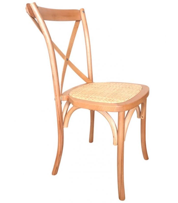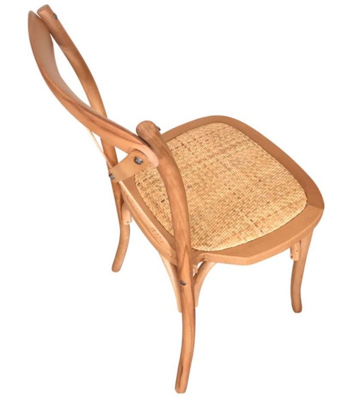 Provenza es una silla con diseño actual gracias a sus acabados, de estilo vintage. Sus terminaciones son curvas, suaves y agradables al tacto, el respaldo es curvo con travesaño central en forma de X aportando comodidad. El asiento está fabricado en rattan, para que la sentada sea agradable. Es una silla que se utiliza en multitud de ambientes, ya que es fácil de combinar. Podrás darle un toque especial a la estancia, sus patas son redondas de madera de haya, con conteras para darle estabilidad al asiento.
