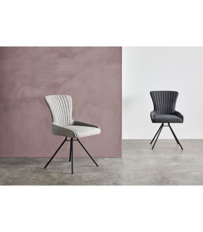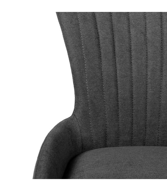 Silla Sandra, compuesta por asiento tapizado con tejido en color gris oscuro, consta de costuras verticales en la parte del respaldo. Su estructura de metal le aporta una gran resistencia, con acabado en color negro. Destaca por su gran comodidad y por su diseño, que hará de tu ambiente un lugar único. Disponible en varios colores.
