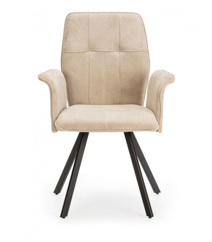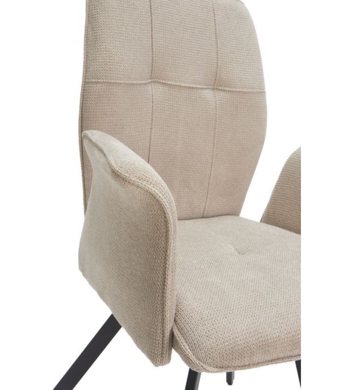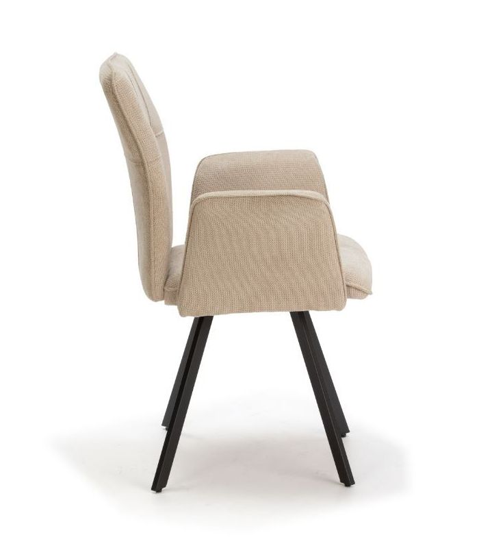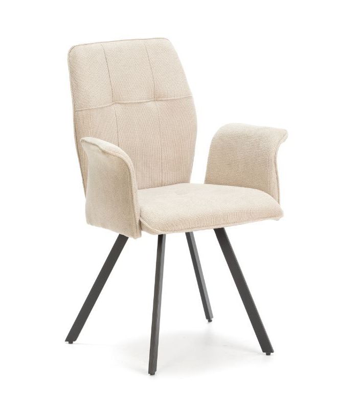 Sillón Mery, tapizado en tejido de alta calidad color beige, disponible también en otros acabados. Su asiento y respaldo son acolchados, recogen a la perfección la forma del cuerpo, con reposabrazos, ofreciéndole una comodidad extrema. Combínalo con una de nuestras mesas y consigue el conjunto perfecto para ti.