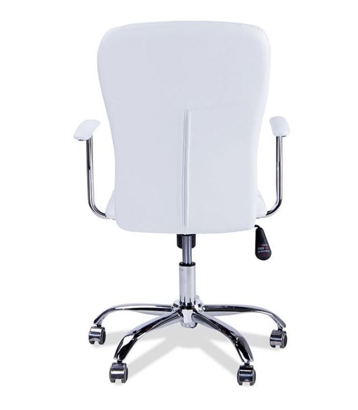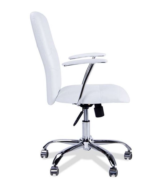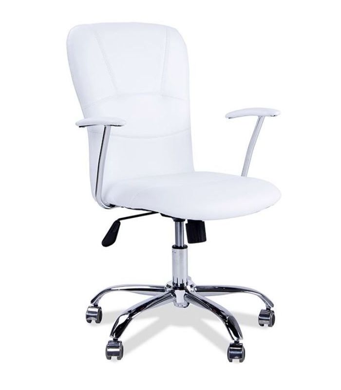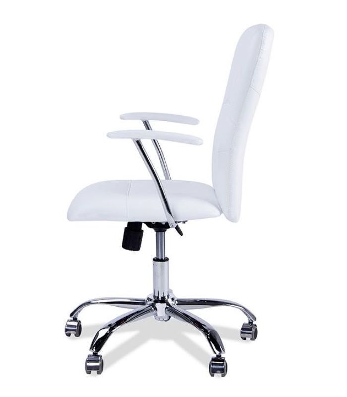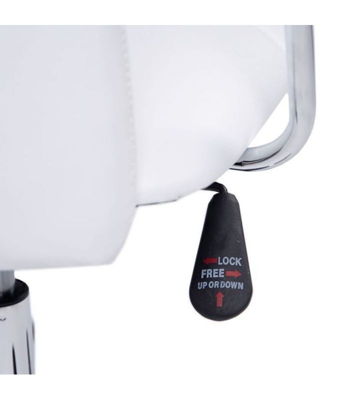 Está fabricado con materiales de alta calidad, gracias a sus acabados es una silla atractiva, combinada en blanco o negro y cromo, dando un resultado fantástico. Sus principales características son: sistema giratorio, mecanismo basculante con bloqueo y modificable en altura.