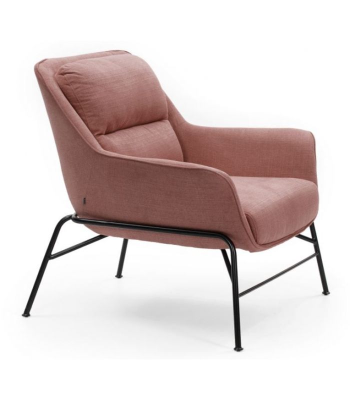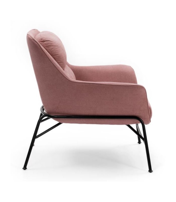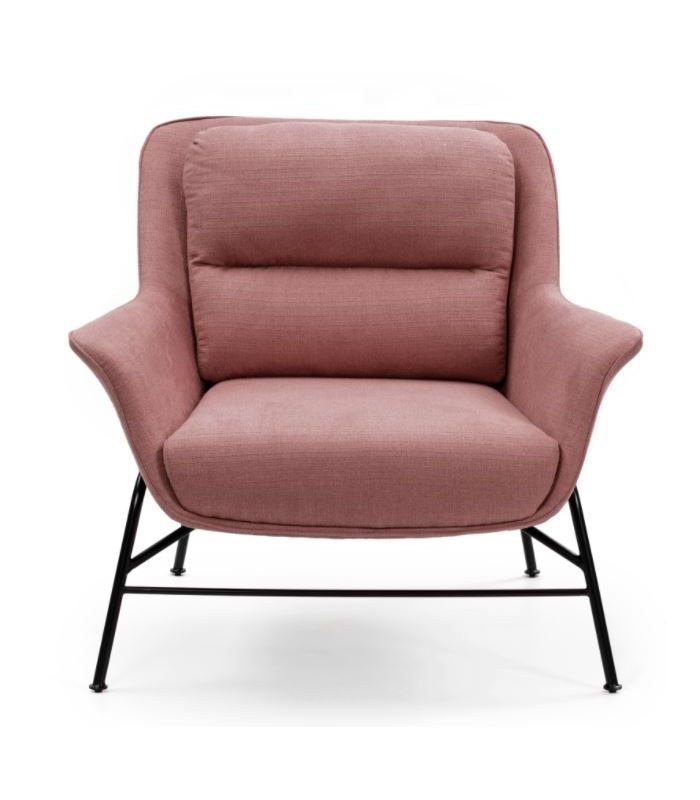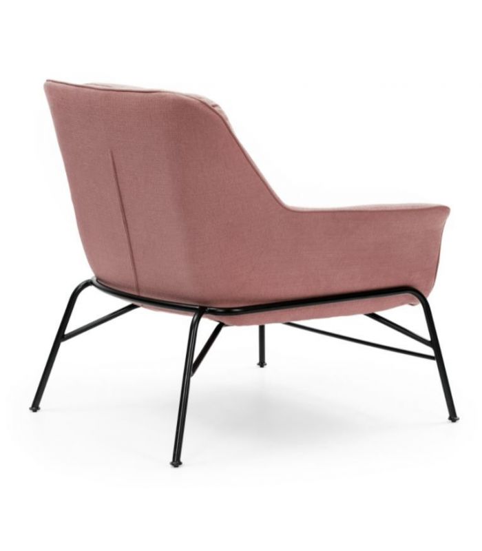Butaca Sadira, Esta compuesta por asiento y respaldo tapizado en tejido de color coral y patas matálicas de una sola pieza que recubre todo el asiento con acabado en color negro. Esta butaca es de estilo moderno, minimalista que aporta el máximo confort.  La colección Sadira ha sido cuidada hasta el último detalle. Disponible en 4 colores.