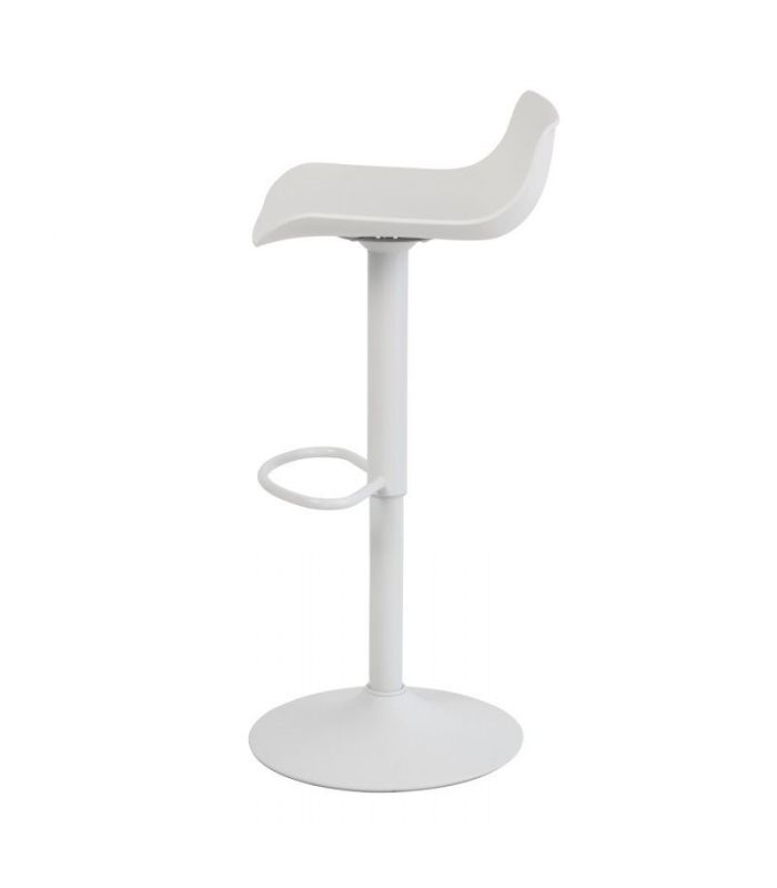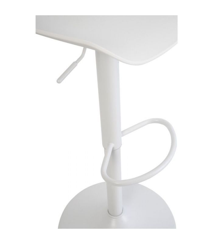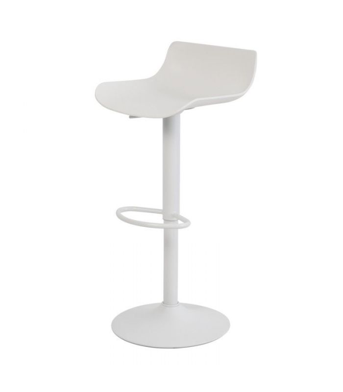 Taburete Blade, compuesto por asiento giratorio de polipropileno y estructura metálica, con acabado en color blanco. Incluye reposapiés, y la altura es regulable. Destaca por su diseño moderno, donde sólo se utiliza un tipo de color, para conseguir un taburete de líneas modernas y depuradas. Ideal para cocinas y restaurantes. Disponible en varios colores.