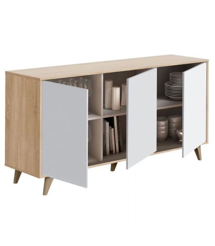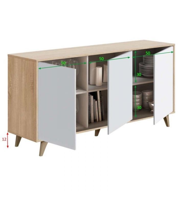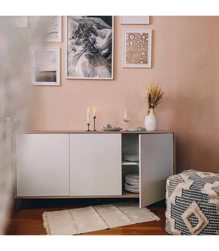 Aparador 3 Puertas Kikua, destaca por su diseño de estilo nórdico, es una opción práctica con 3 puertas y diferentes huecos para guardar todo lo que se necesite. Su capacidad de almacenaje es amplia, y sus colores de terminación nos permiten encajarlo en gran variedad de estancias, incluso cuenta con la opción de combinar con el resto de la colección Kikua, disponible en nuestra web.