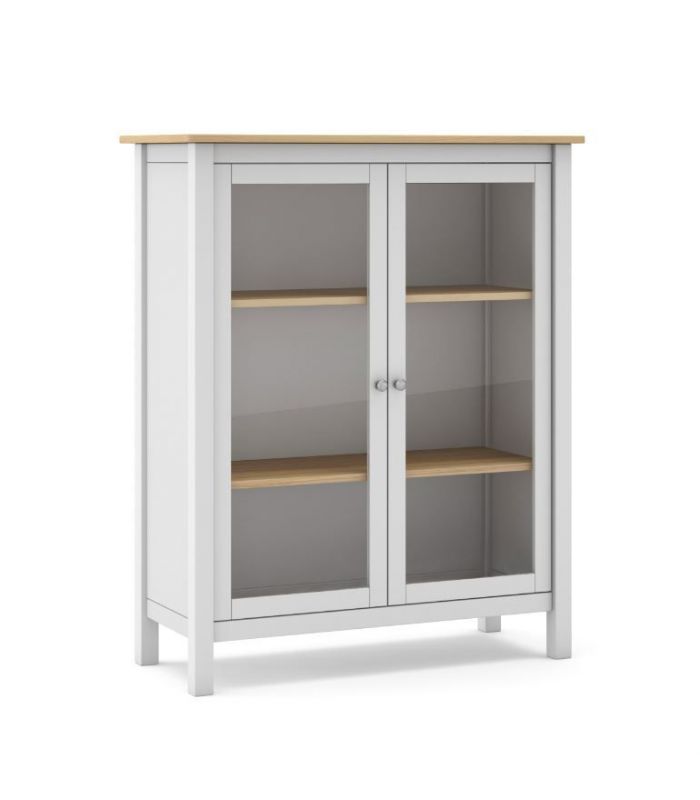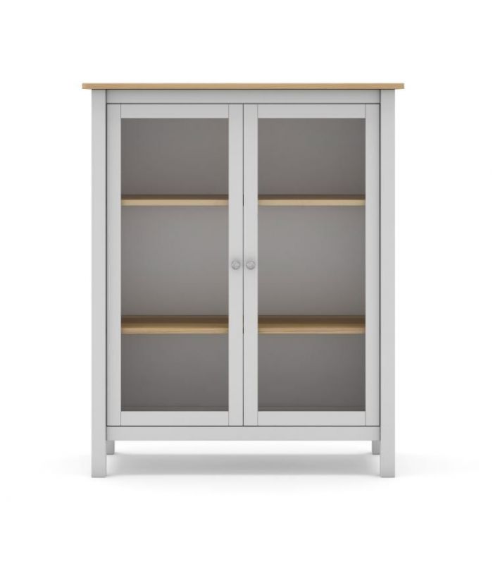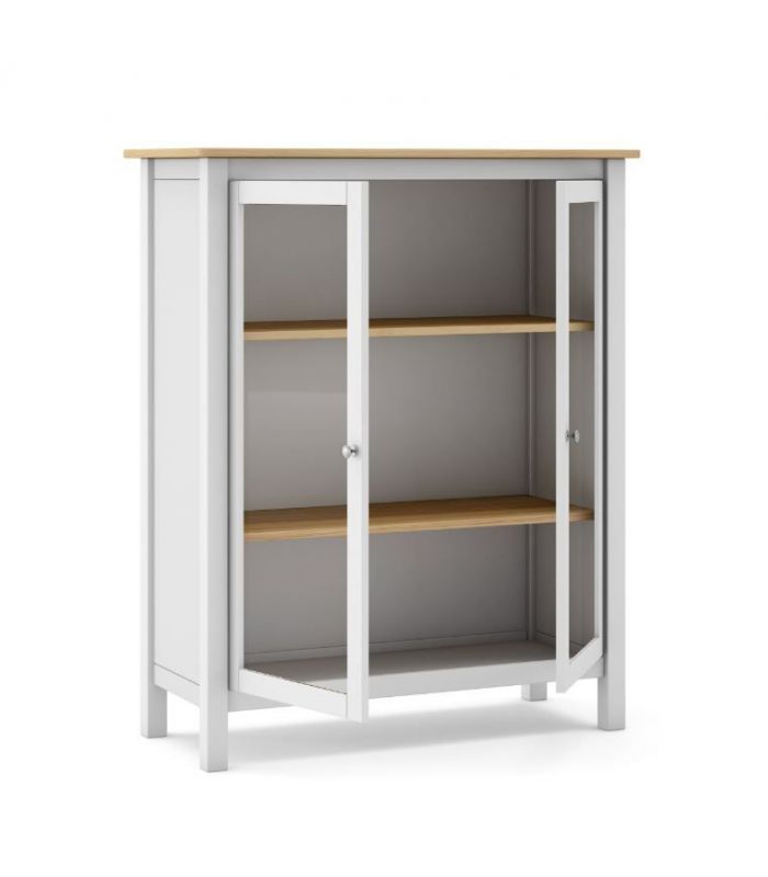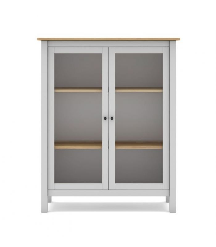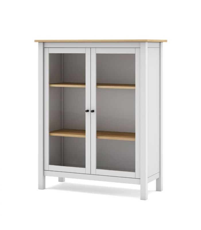 puertas de cristal de fácil apertura. Su interior cuenta con 2 estantes, dejando 3 huecos en su interior ideal para utilizar de almacenaje. Está fabricada en